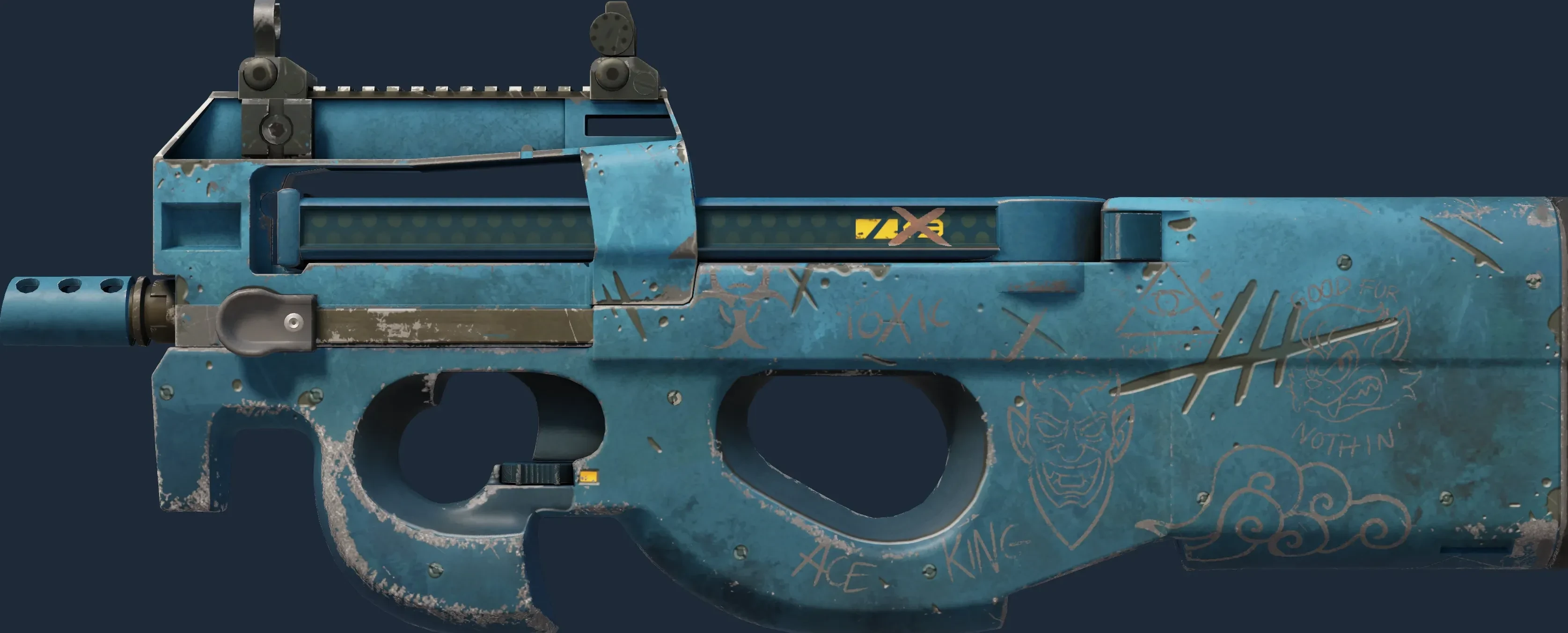 The P90 | Off World is a Covert grade skin for the P90 in Counter-Strike 2. It features a Custom Paint Job finish and was designed by Puffin.
