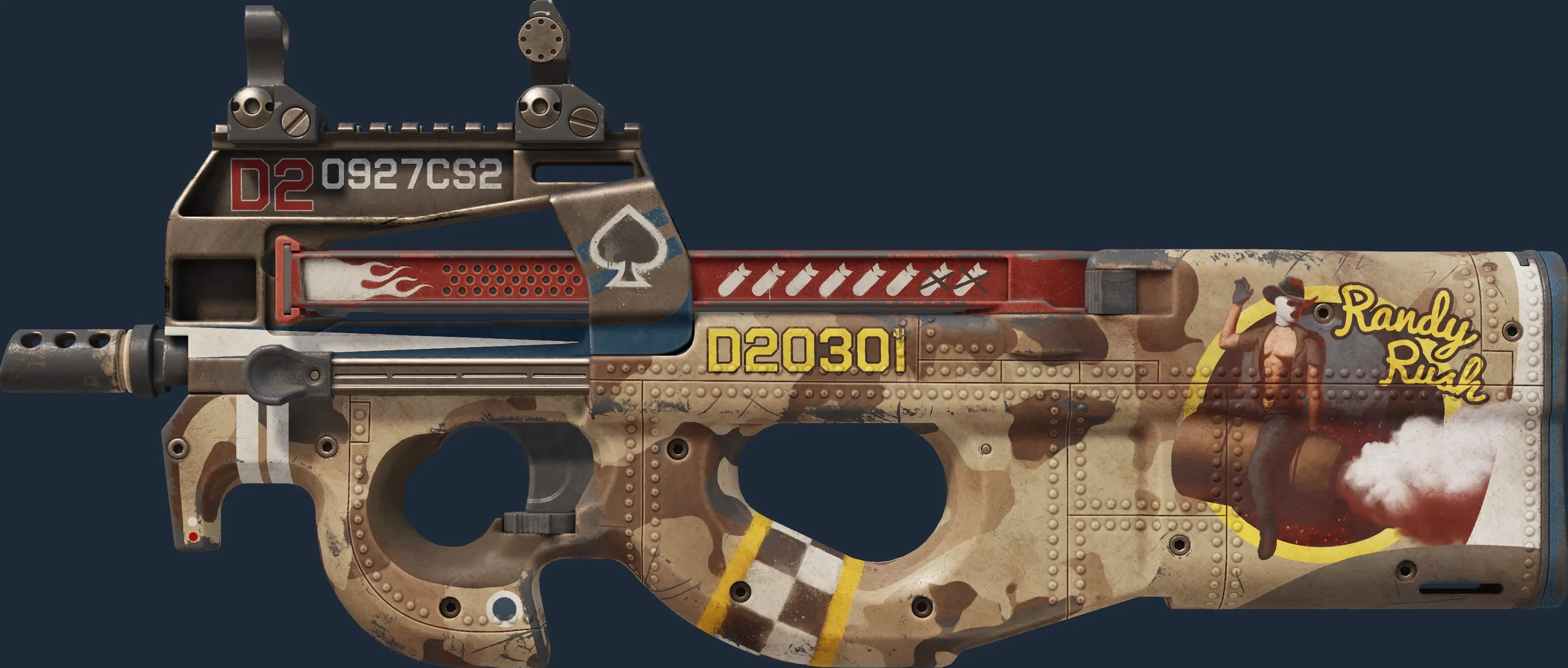 The P90 | Randy Rush is a Covert grade skin for the P90 in Counter-Strike 2. It features a Custom Paint Job finish and was designed by Frostbug.