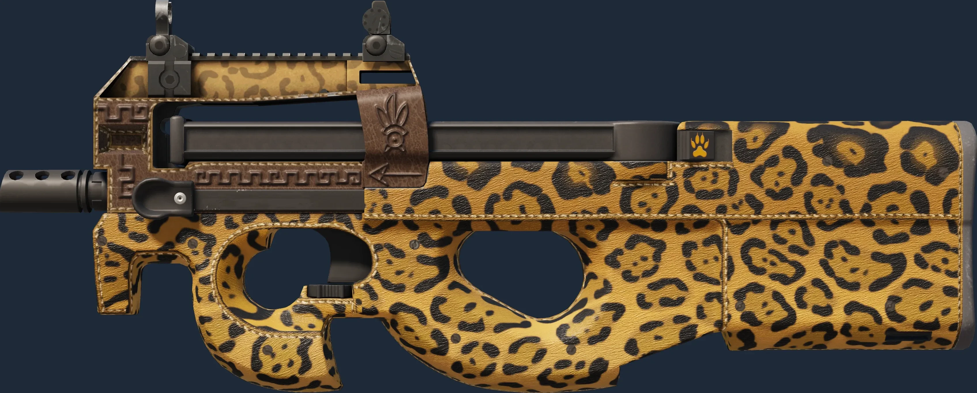 The P90 | Run And Hide is a Covert grade skin for the P90 in Counter-Strike 2. It features a Custom Paint Job finish and was designed by Valve.