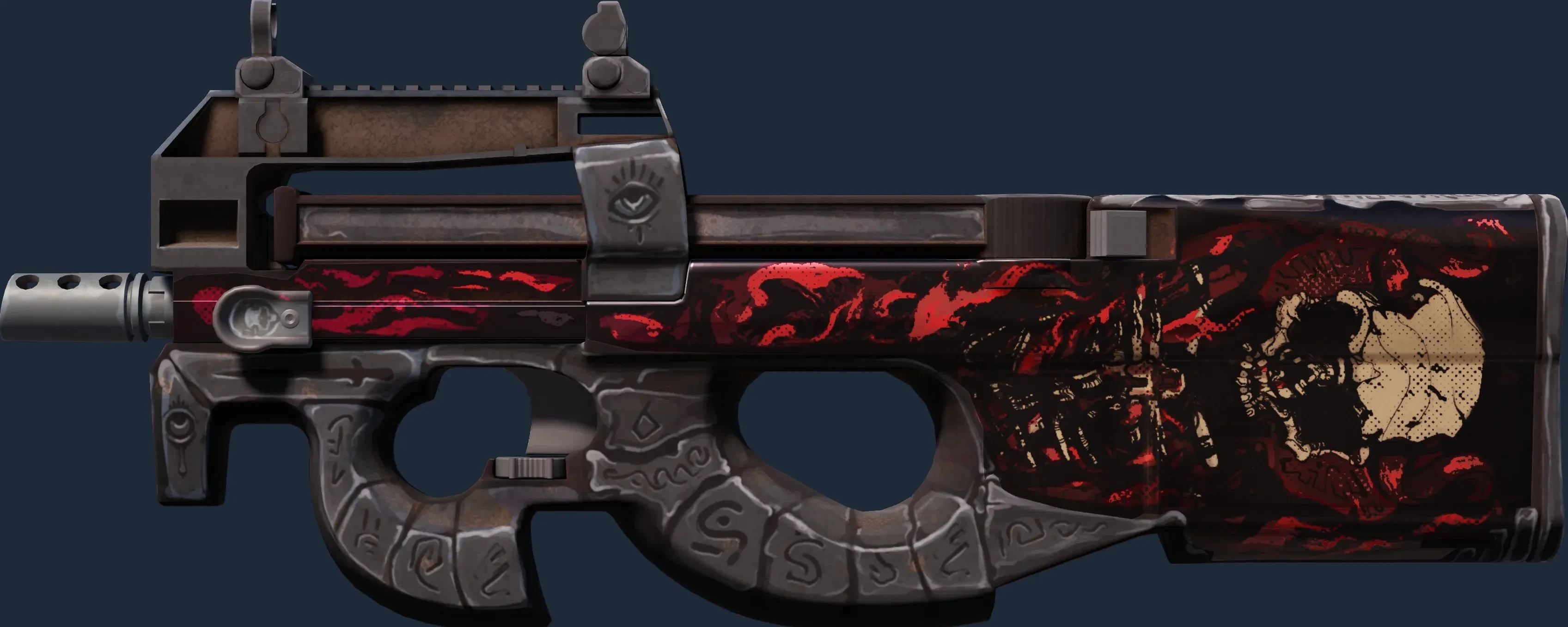 The P90 | Shallow Grave is a Covert grade skin for the P90 in Counter-Strike 2. It features a Custom Paint Job finish and was designed by Hoxton.