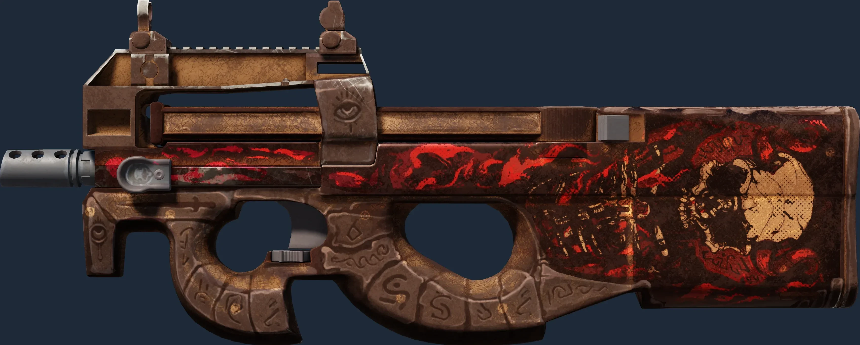 The P90 | Shallow Grave is a Covert grade skin for the P90 in Counter-Strike 2. It features a Custom Paint Job finish and was designed by Hoxton.