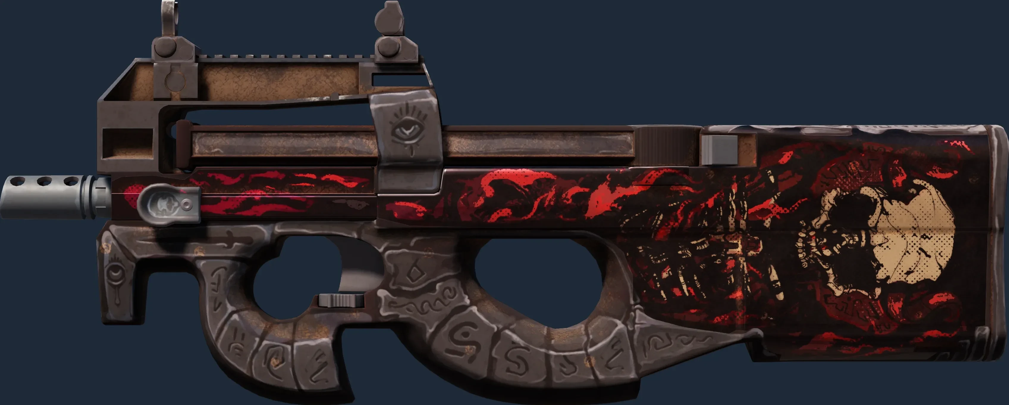 The P90 | Shallow Grave is a Covert grade skin for the P90 in Counter-Strike 2. It features a Custom Paint Job finish and was designed by Hoxton.