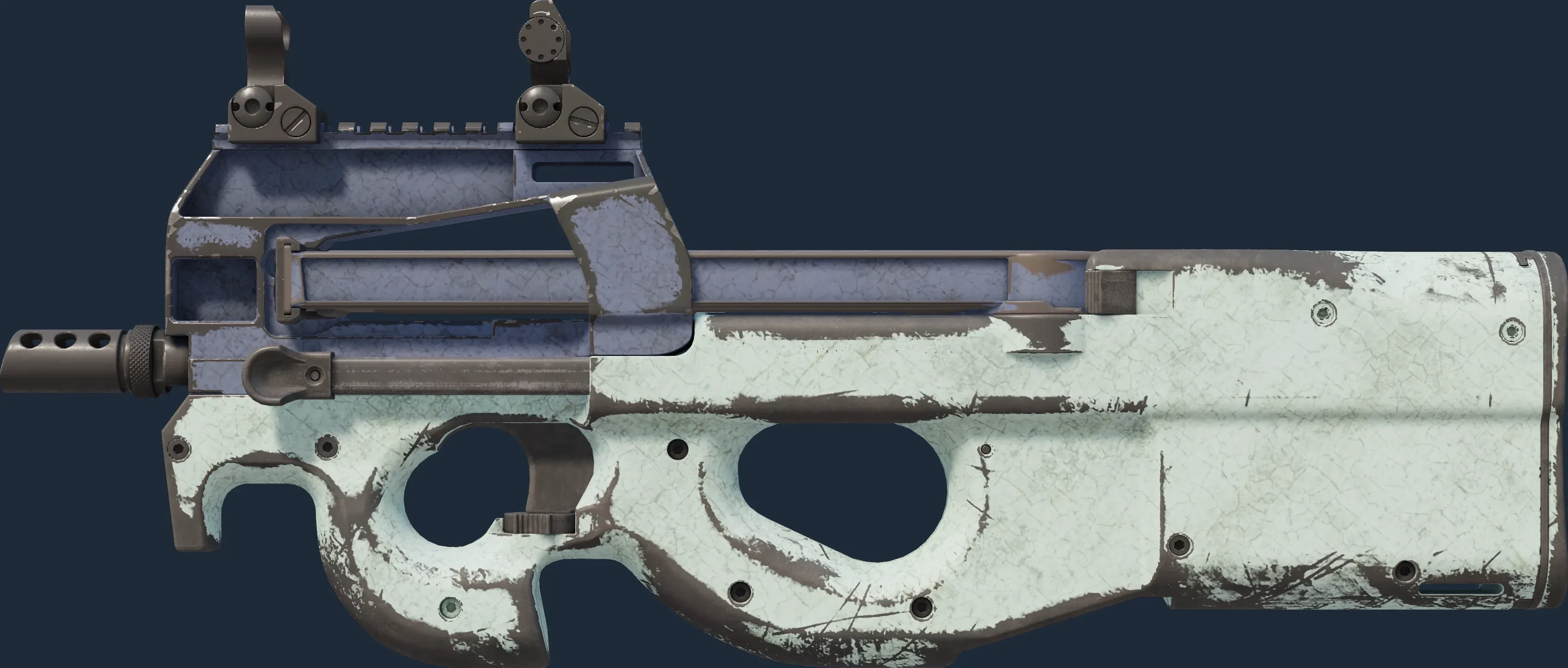 The P90 | Storm is a Covert grade skin for the P90 in Counter-Strike 2. It features a Custom Paint Job finish and was designed by Valve.