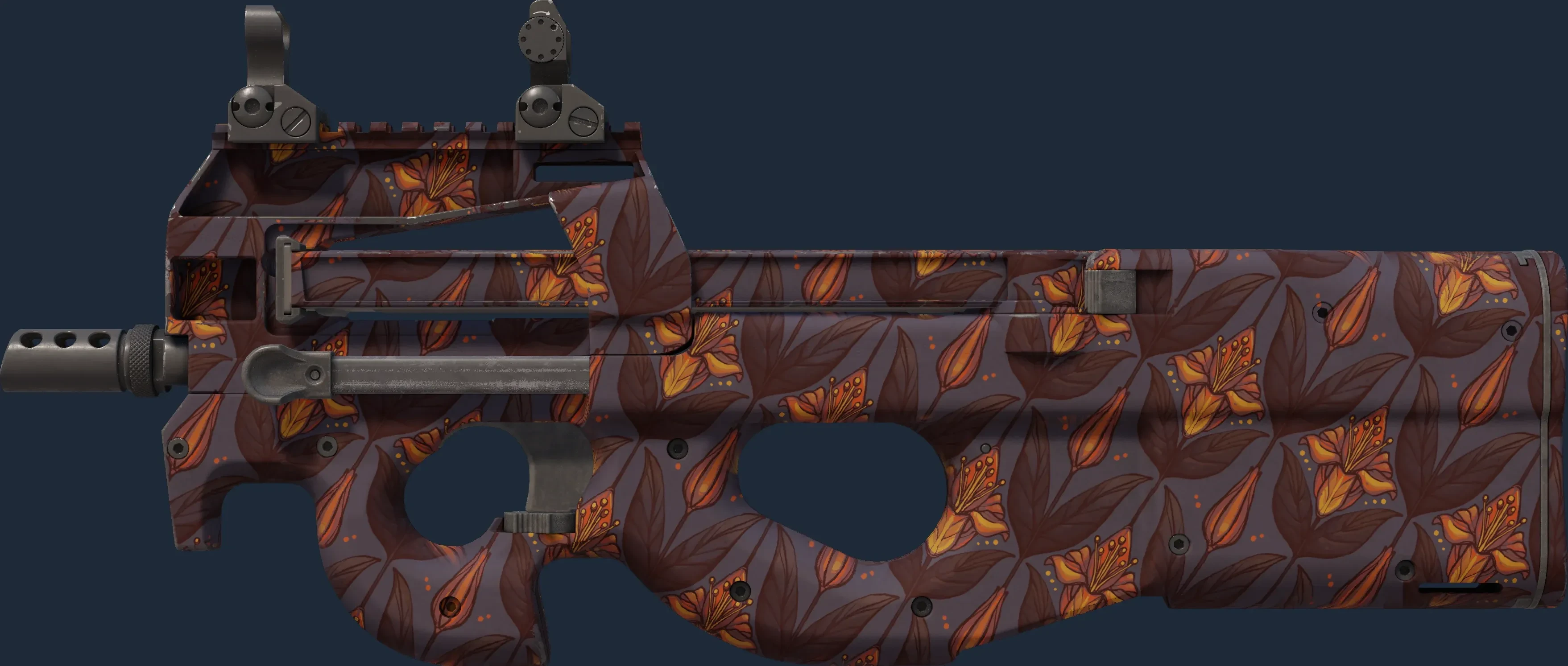 The P90 | Sunset Lily is a Covert grade skin for the P90 in Counter-Strike 2. It features a Custom Paint Job finish and was designed by Valve.