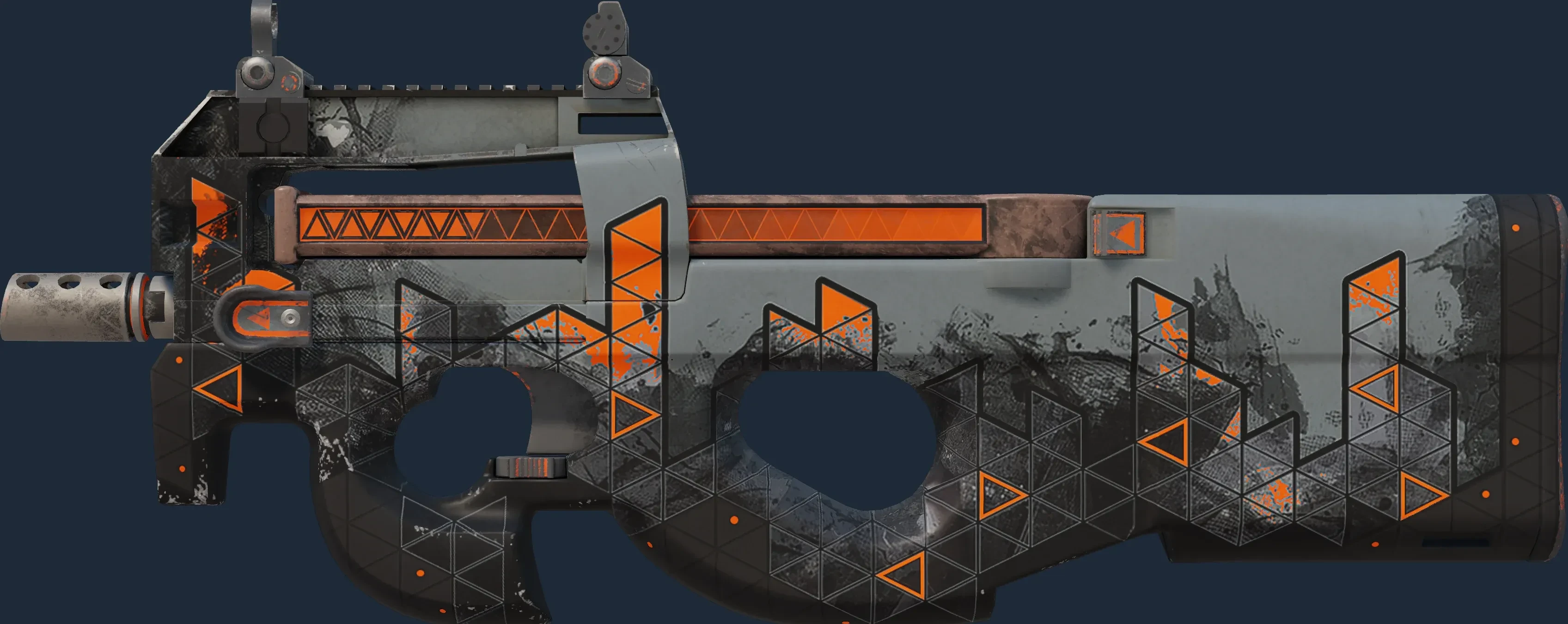 The P90 | Trigon is a Covert grade skin for the P90 in Counter-Strike 2. It features a Custom Paint Job finish and was designed by FACEIT.