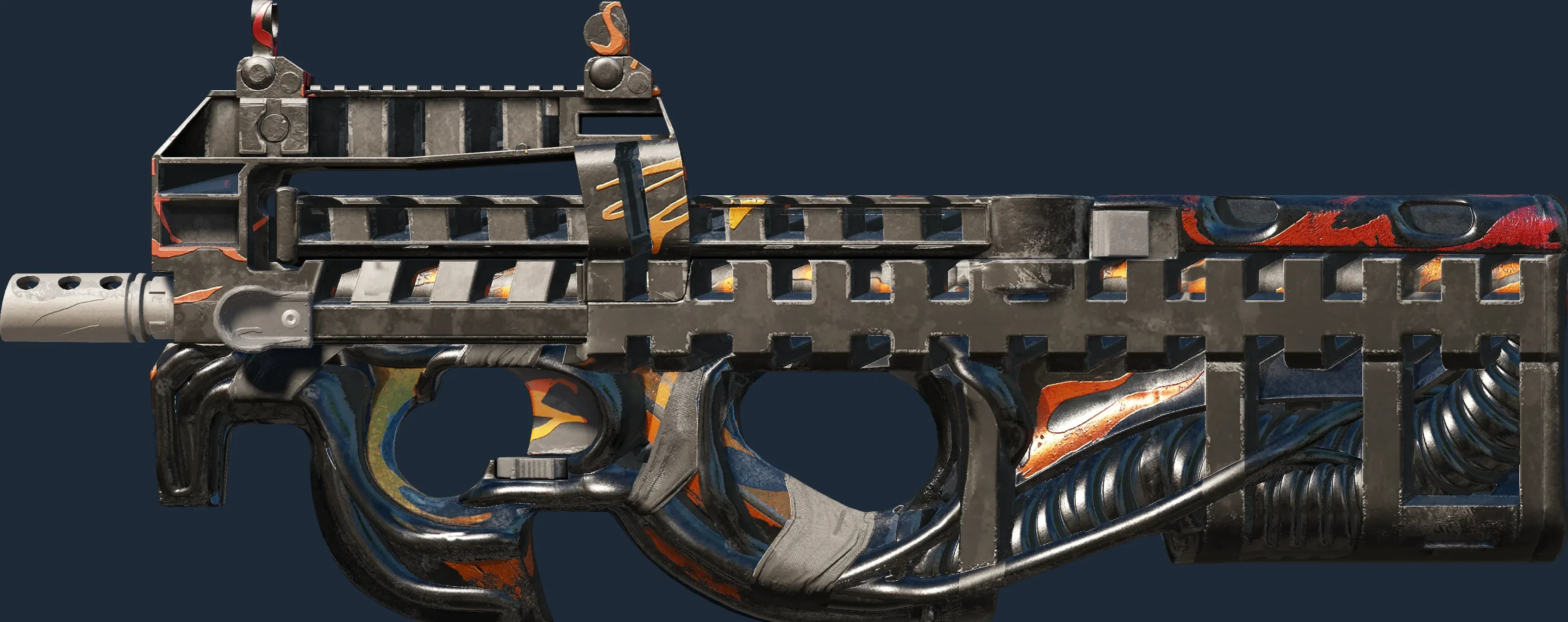 The P90 | Vent Rush is a Covert grade skin for the P90 in Counter-Strike 2. It features a Custom Paint Job finish and was designed by de puiseau.