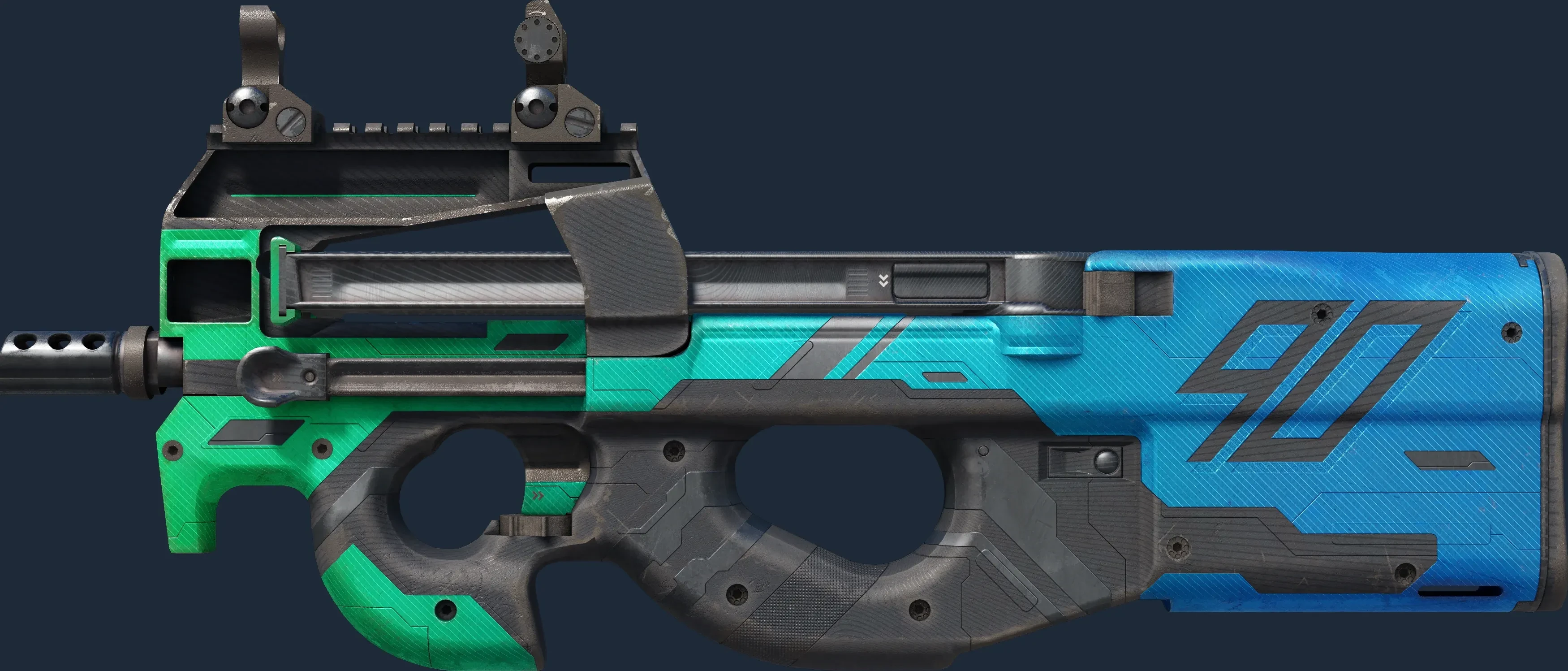 The P90 | Wave Breaker is a Covert grade skin for the P90 in Counter-Strike 2. It features a Custom Paint Job finish and was designed by JKKKDL.