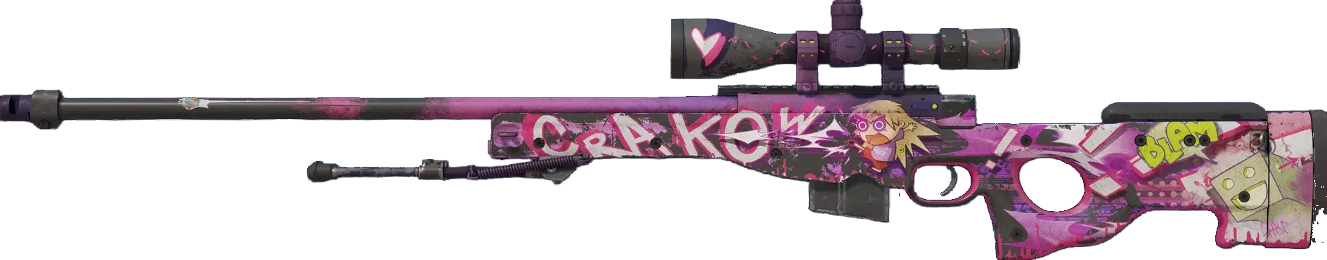 High risk and high reward, the infamous AWP is recognizable by its signature report and one-shot, one-kill policy. It has been custom painted using whimsical, playground-style art depicting a little girl and her robot. _Playing make believe_