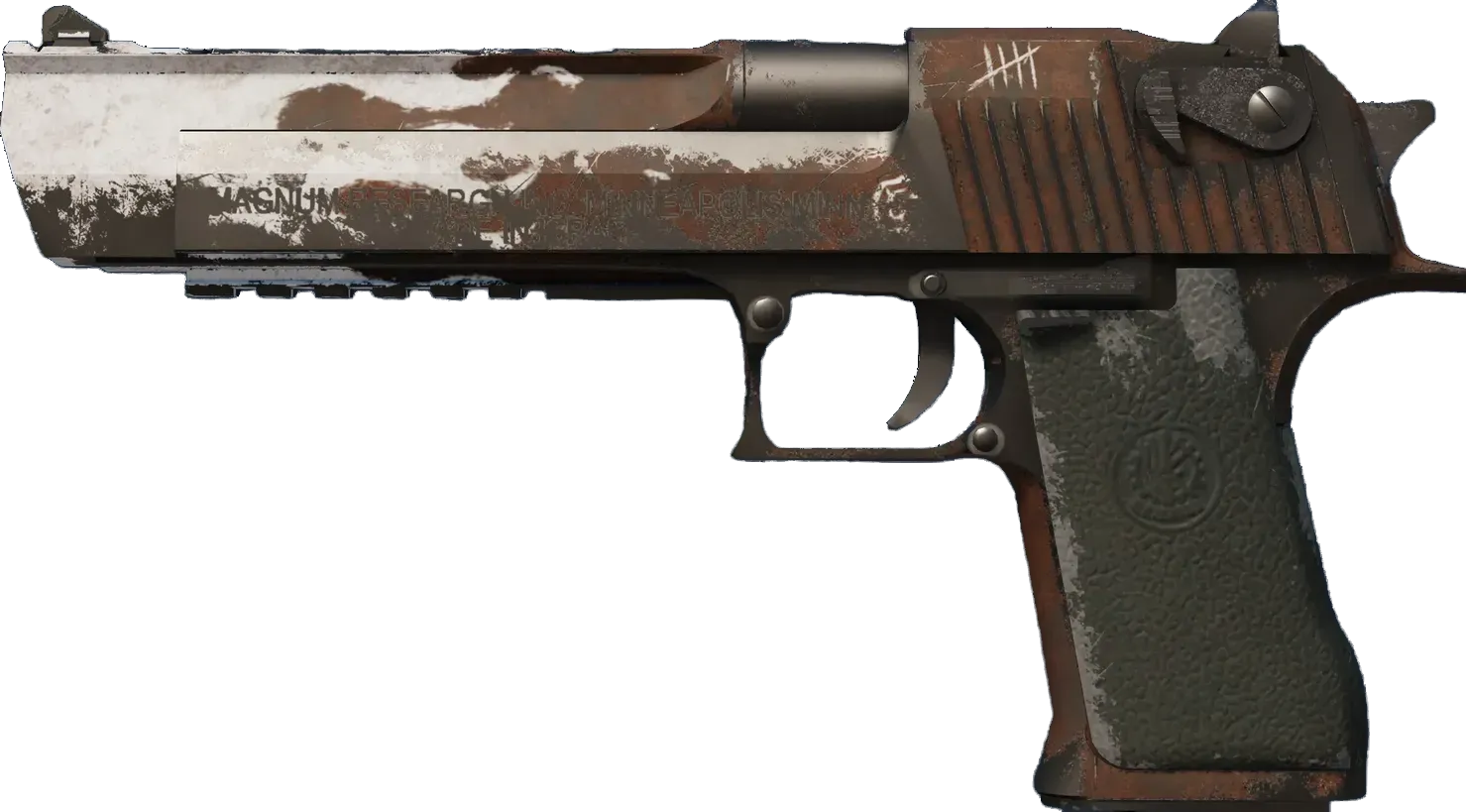 As expensive as it is powerful, the pistols/desert-eagle" class="text-orange-500 hover:underline underline-offset-4 decoration-orange-500/30">Desert Eagle is an iconic pistol that is difficult to master but surprisingly accurate at long range. A custom paint job has been applied with a rust-colored base and white detailing. _Nothing a little sandpaper can't fix_