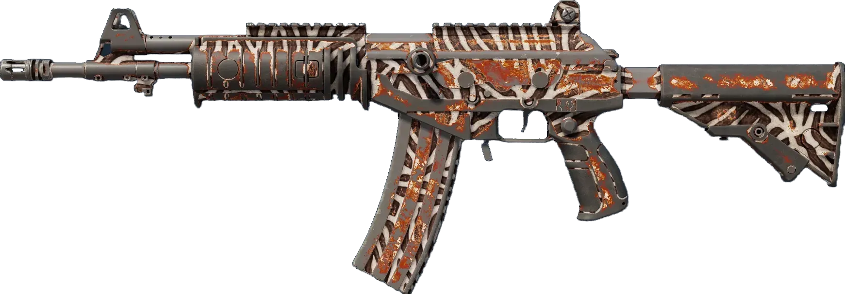 A less expensive option among the terrorist-exclusive assault rifles, the Galil AR is a serviceable weapon in medium to long-range combat. A rust-colored pattern has been spray painted over a white base. _Your personal battle cry_