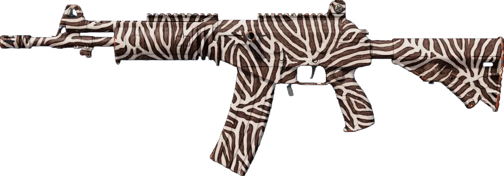 A less expensive option among the terrorist-exclusive assault rifles, the Galil AR is a serviceable weapon in medium to long-range combat. A rust-colored pattern has been spray painted over a white base. _Your personal battle cry_