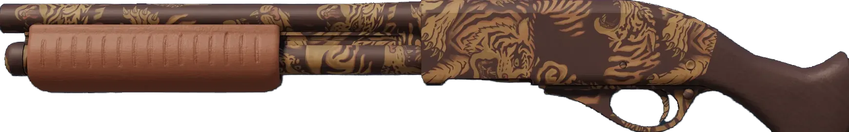 The classic Sawed-Off deals very heavy close-range damage, but with its low accuracy, high spread and slow rate of fire, you'd better kill what you hit. A brown and tan hydrographic tiger pattern has been applied. _Normally solo predators, they'll make an exception for you_