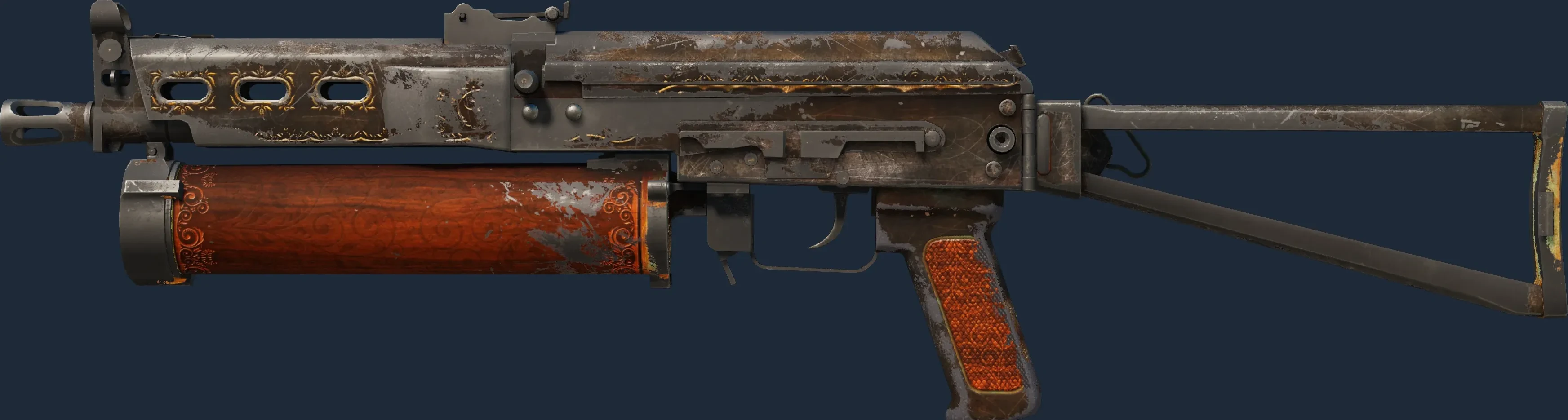 The PP-Bizon | Antique is a Covert grade skin for the PP-Bizon in Counter-Strike 2. It features a Custom Paint Job finish and was designed by Ancient.