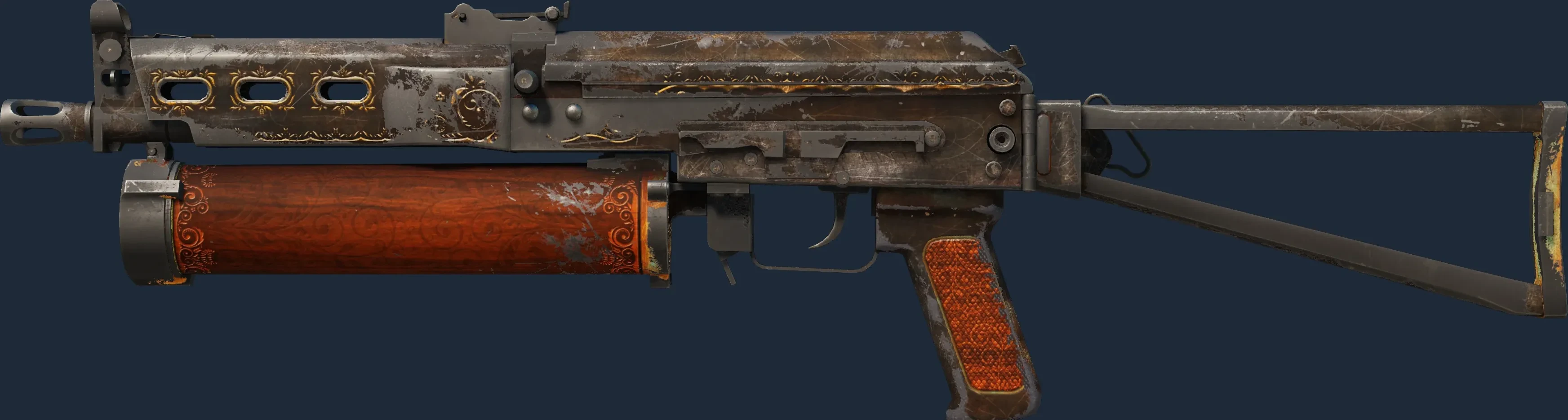 The PP-Bizon | Antique is a Covert grade skin for the PP-Bizon in Counter-Strike 2. It features a Custom Paint Job finish and was designed by Ancient.