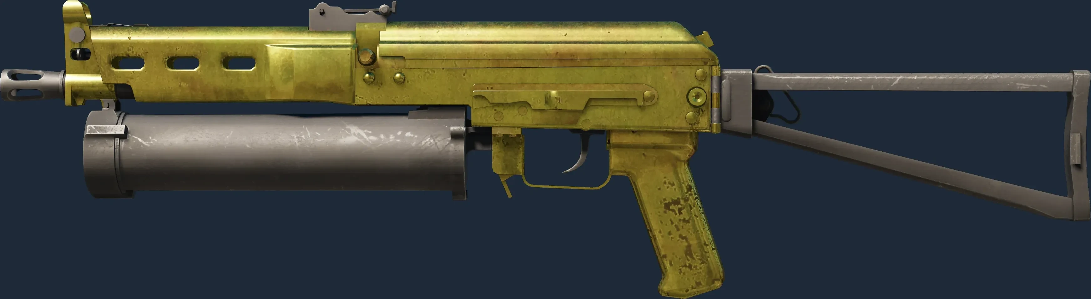 The PP-Bizon | Brass is a Covert grade skin for the PP-Bizon in Counter-Strike 2. It features a Custom Paint Job finish and was designed by Valve.
