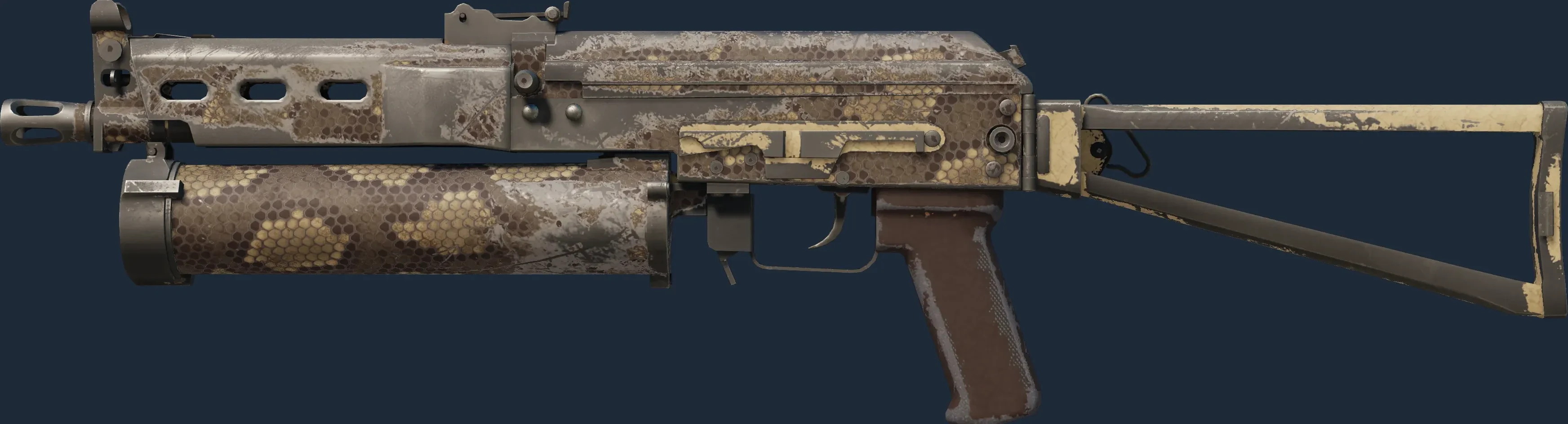 The PP-Bizon | Death Rattle is a Covert grade skin for the PP-Bizon in Counter-Strike 2. It features a Custom Paint Job finish and was designed by Valve.