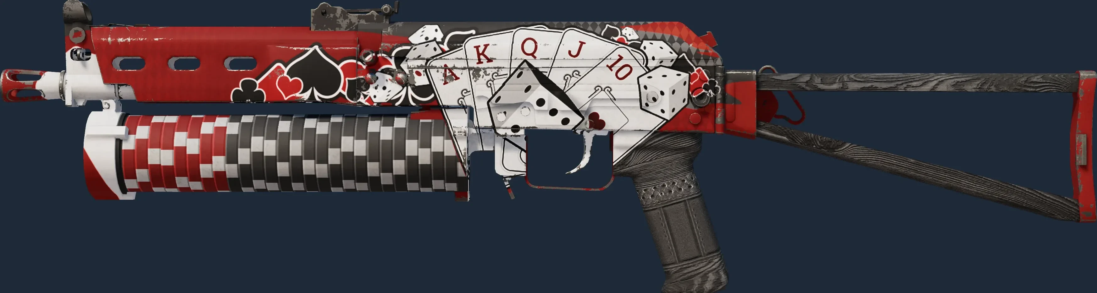 The PP-Bizon | High Roller is a Covert grade skin for the PP-Bizon in Counter-Strike 2. It features a Custom Paint Job finish and was designed by kosear.