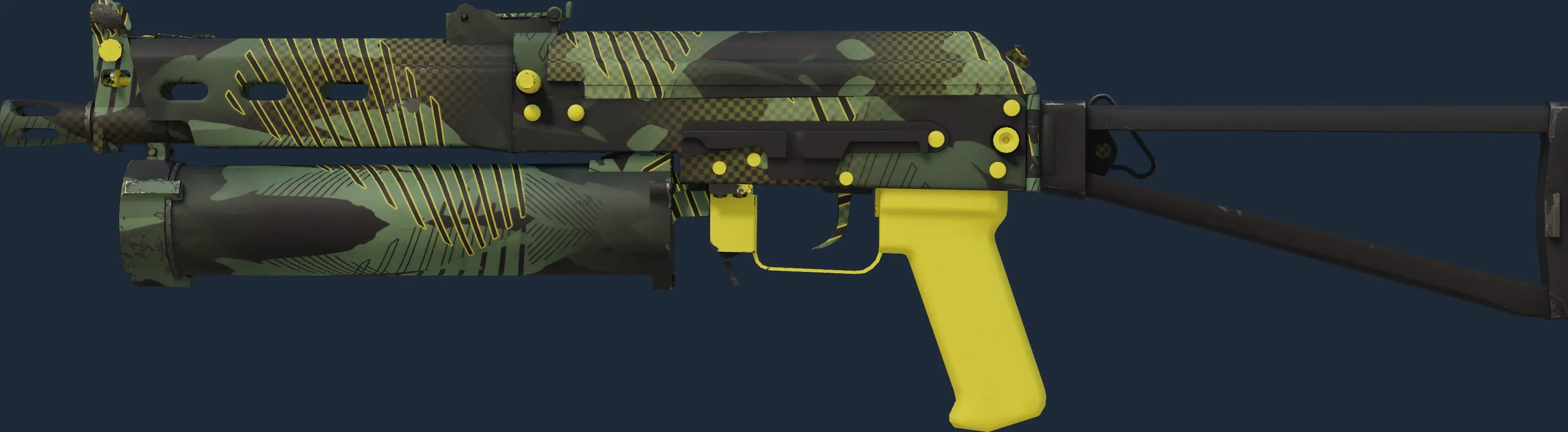 The PP-Bizon | Jungle Slipstream is a Covert grade skin for the PP-Bizon in Counter-Strike 2. It features a Custom Paint Job finish and was designed by dabes.