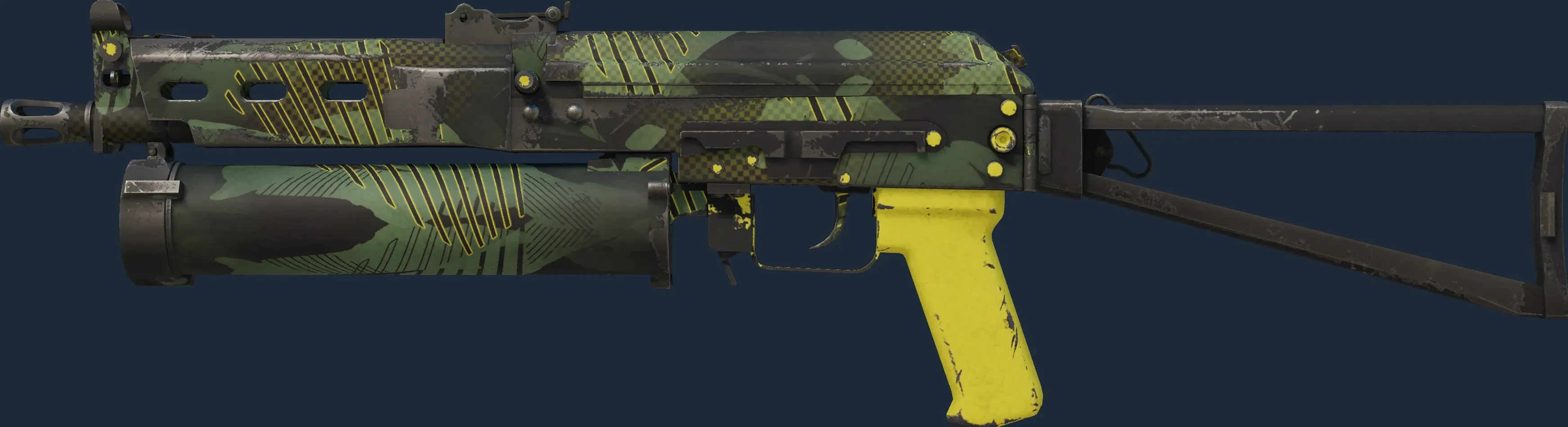 The PP-Bizon | Jungle Slipstream is a Covert grade skin for the PP-Bizon in Counter-Strike 2. It features a Custom Paint Job finish and was designed by dabes.