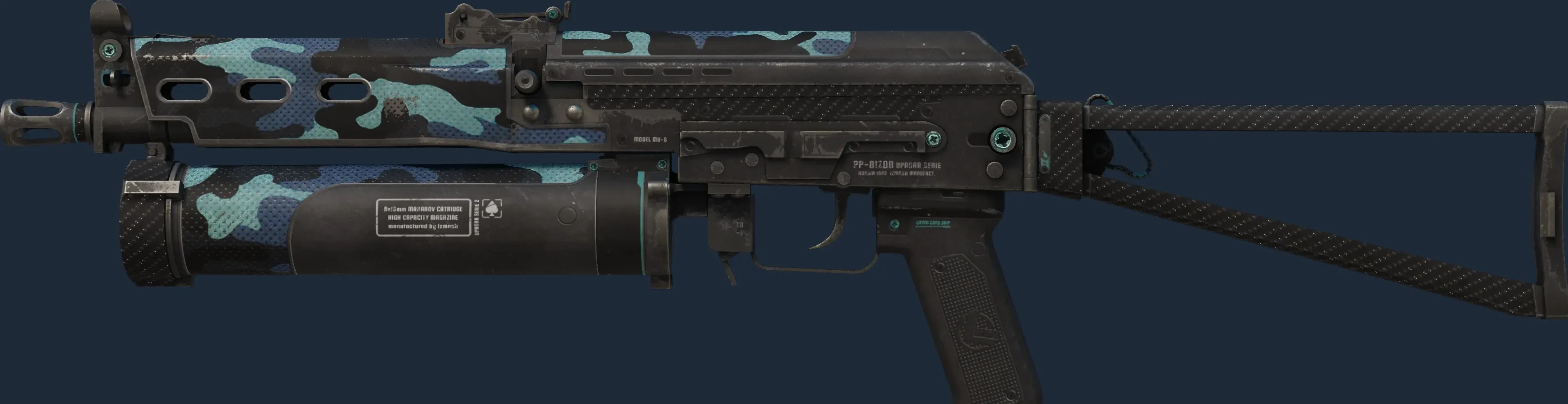 The PP-Bizon | Night Riot is a Covert grade skin for the PP-Bizon in Counter-Strike 2. It features a Custom Paint Job finish and was designed by M1nD.