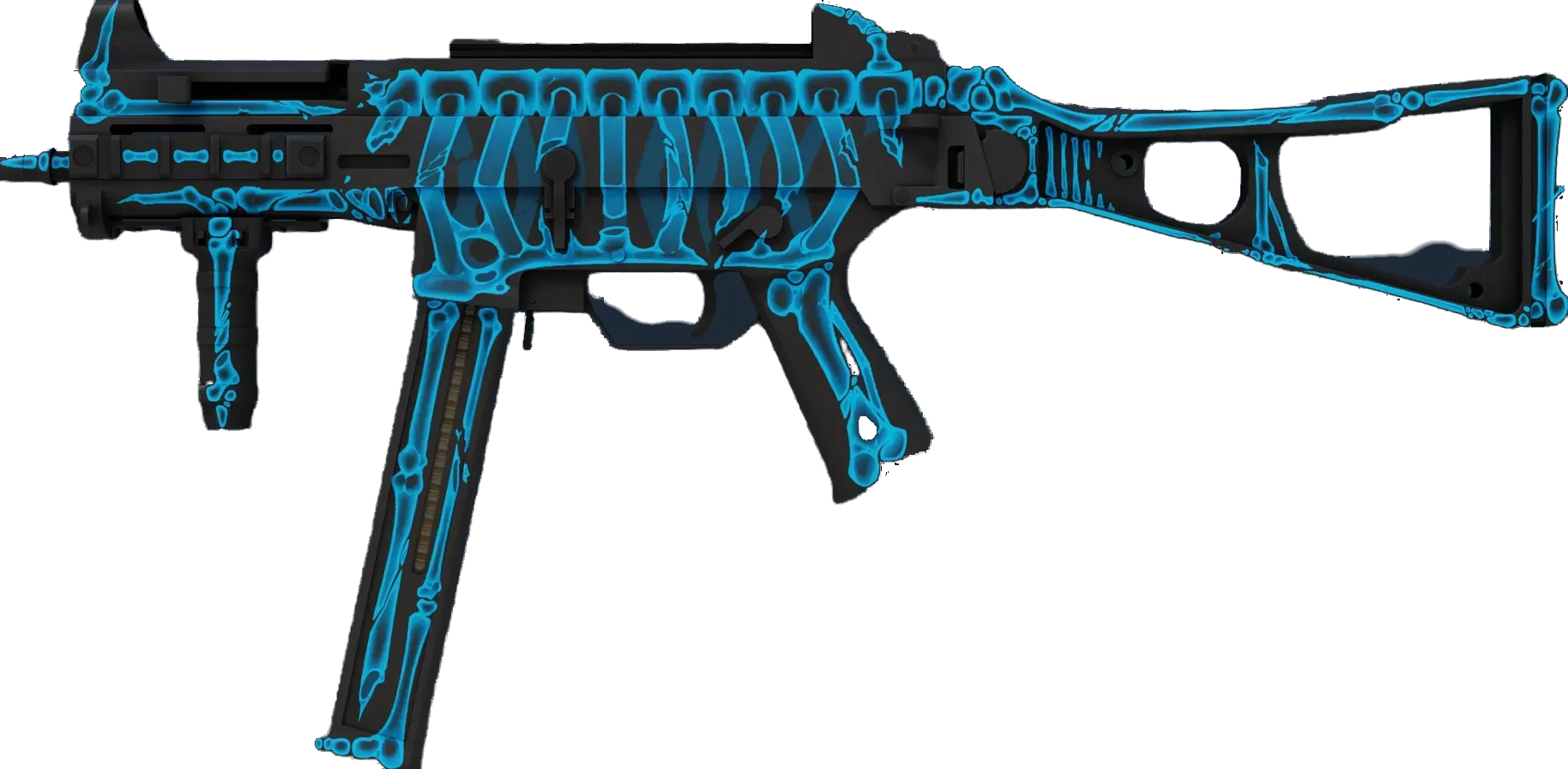 The misunderstood middle child of the SMG family, the UMP45's small magazine is the only drawback to an otherwise versatile close-quarters automatic. A custom paint job has been applied which resembles an x-ray; rib cage and all. _"Please remove all metal objects from your pockets"_