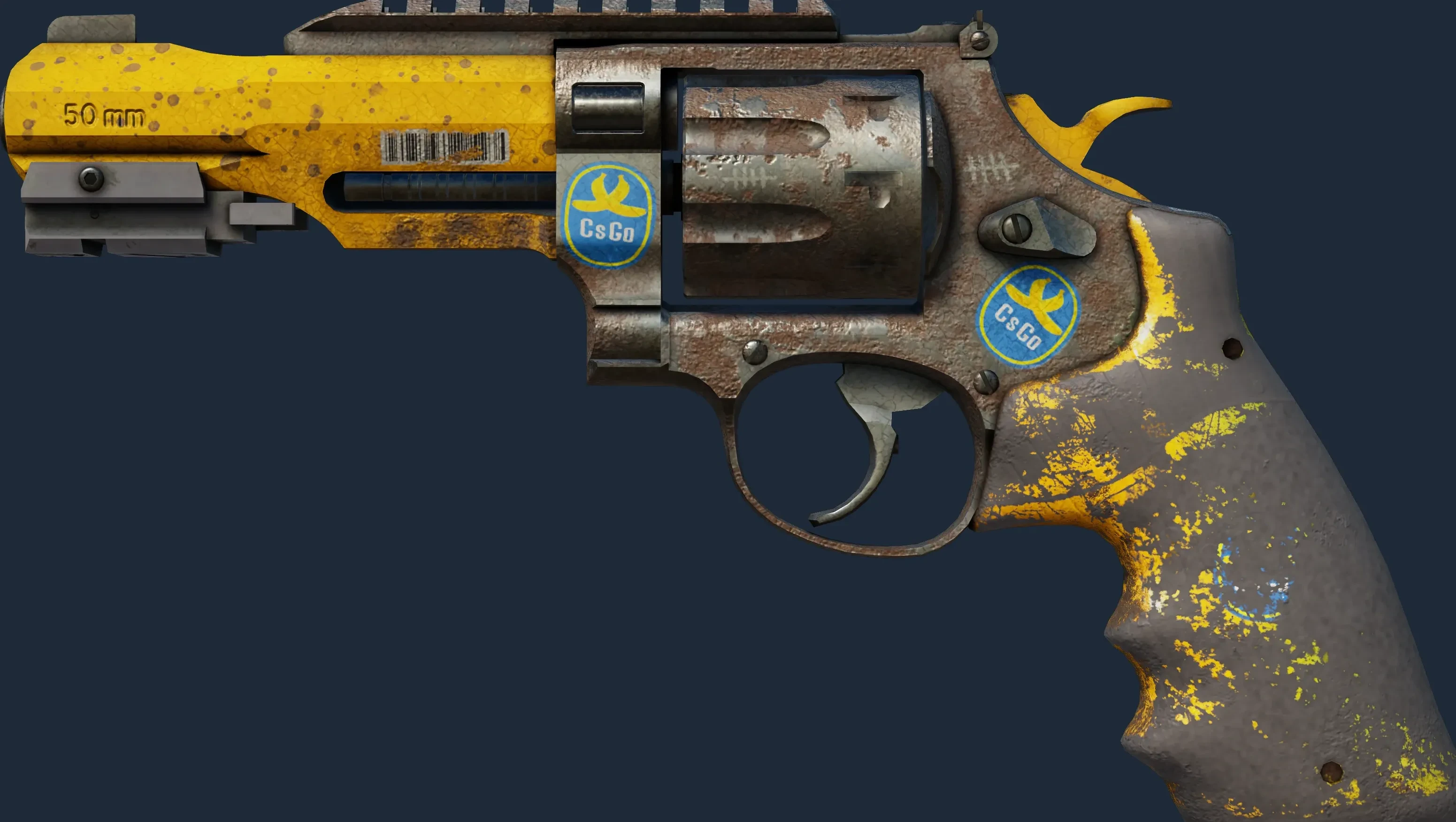 The R8 Revolver | Banana Cannon is a Covert grade skin for the R8 Revolver in Counter-Strike 2. It features a Custom Paint Job finish and was designed by 123.