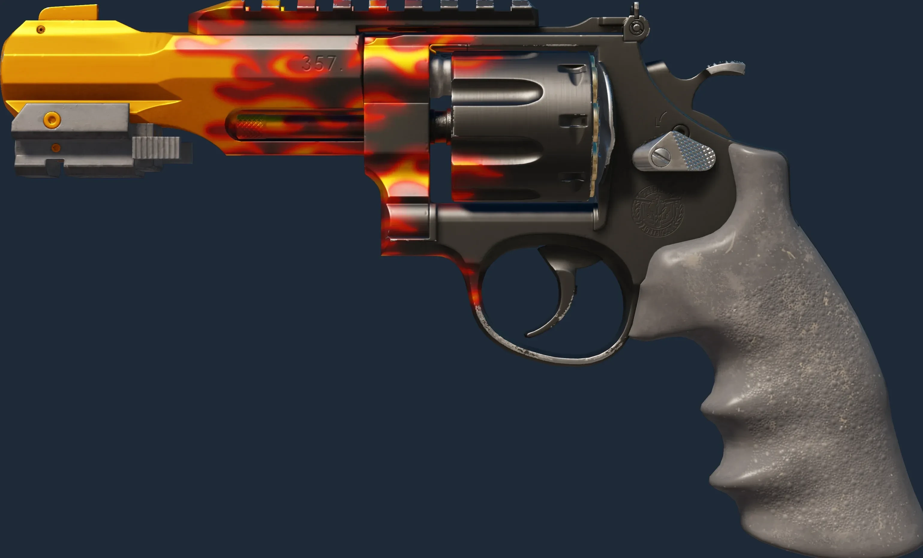 The R8 Revolver | Blaze is a Covert grade skin for the R8 Revolver in Counter-Strike 2. It features a Custom Paint Job finish and was designed by Valve.