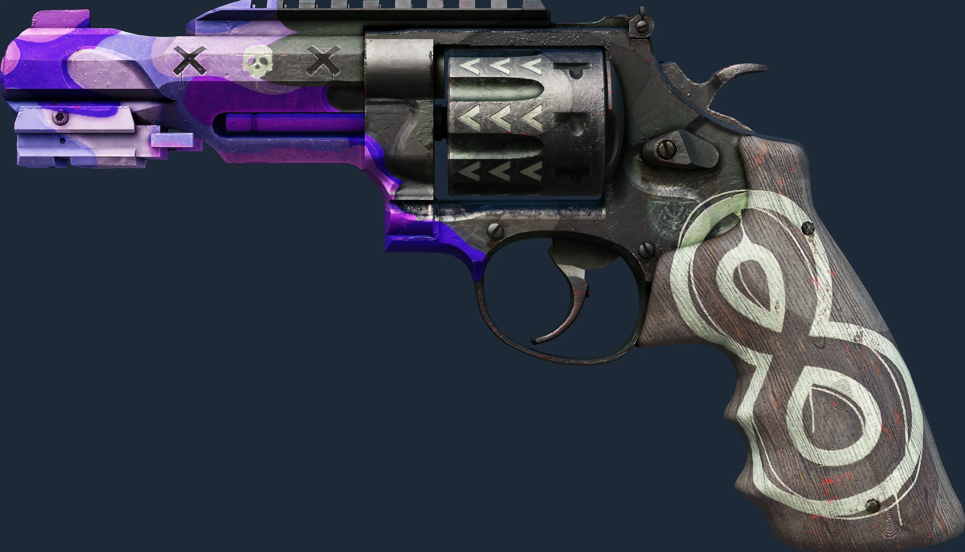 The R8 Revolver | Crazy 8 is a Covert grade skin for the R8 Revolver in Counter-Strike 2. It features a Custom Paint Job finish and was designed by MADMACK.