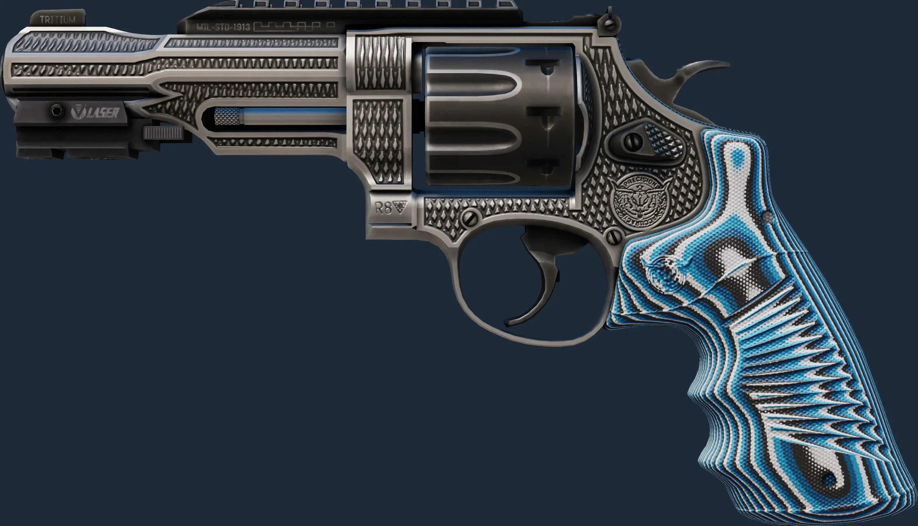 The R8 Revolver | Grip is a Covert grade skin for the R8 Revolver in Counter-Strike 2. It features a Custom Paint Job finish and was designed by Teo.