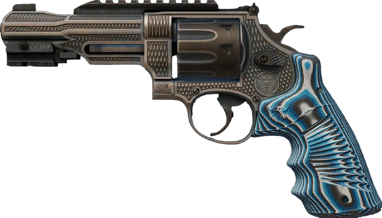 The R8 Revolver | Grip is a Classified rarity skin.
