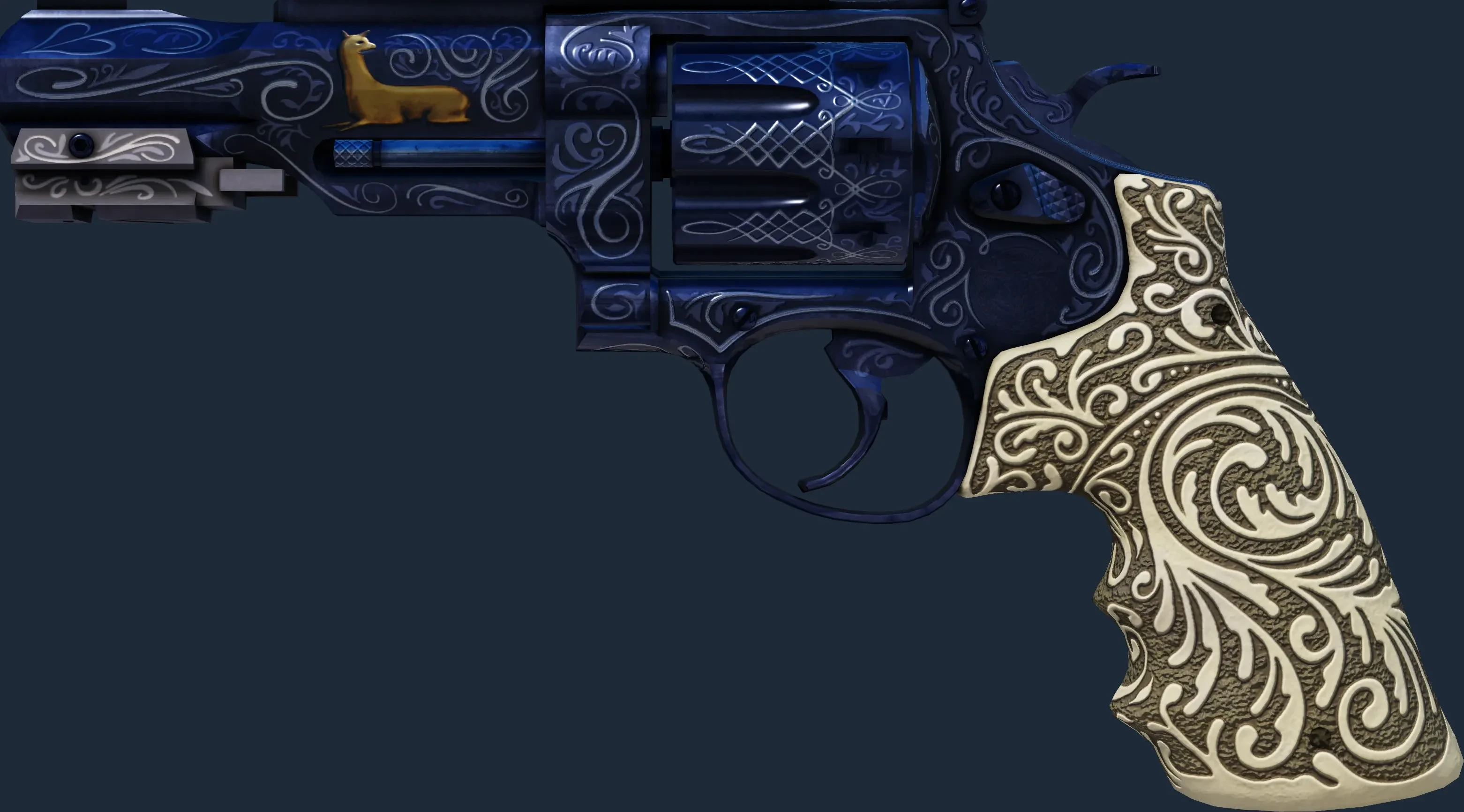 The R8 Revolver | Llama Cannon is a Covert grade skin for the R8 Revolver in Counter-Strike 2. It features a Custom Paint Job finish and was designed by The Honey Badger.