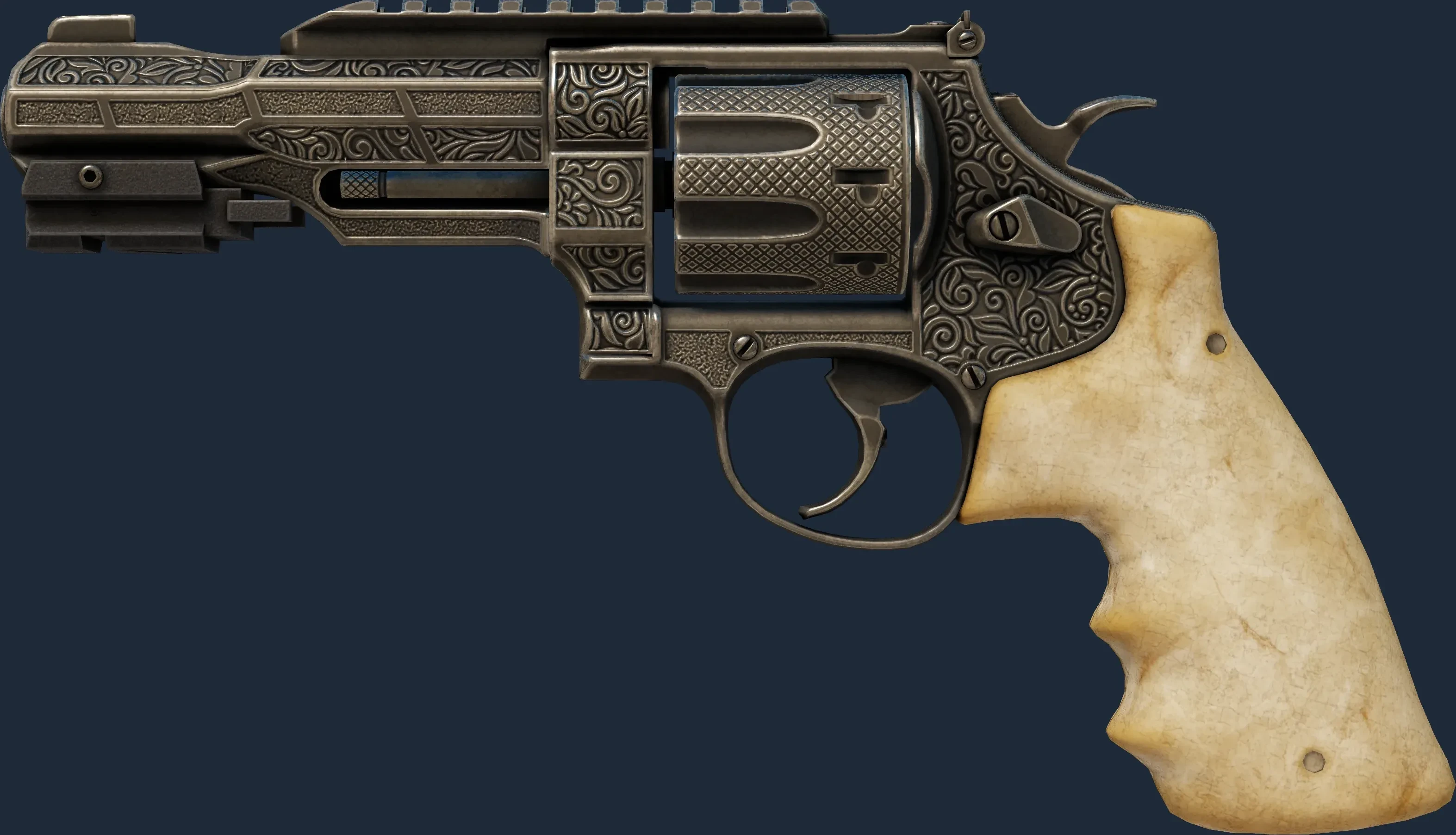 The R8 Revolver | Memento is a Covert grade skin for the R8 Revolver in Counter-Strike 2. It features a Custom Paint Job finish and was designed by madpoly.