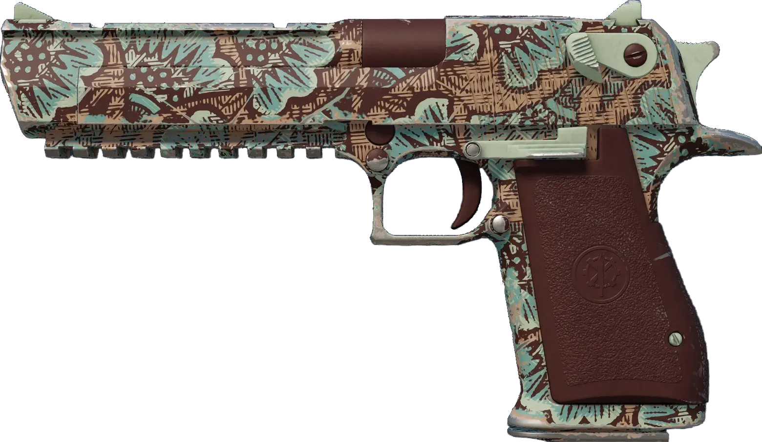As expensive as it is powerful, the pistols/desert-eagle" class="text-orange-500 hover:underline underline-offset-4 decoration-orange-500/30">Desert Eagle is an iconic pistol that is difficult to master but surprisingly accurate at long range. A teal and brown halftone fan pattern has been applied. _Let's clear the air_