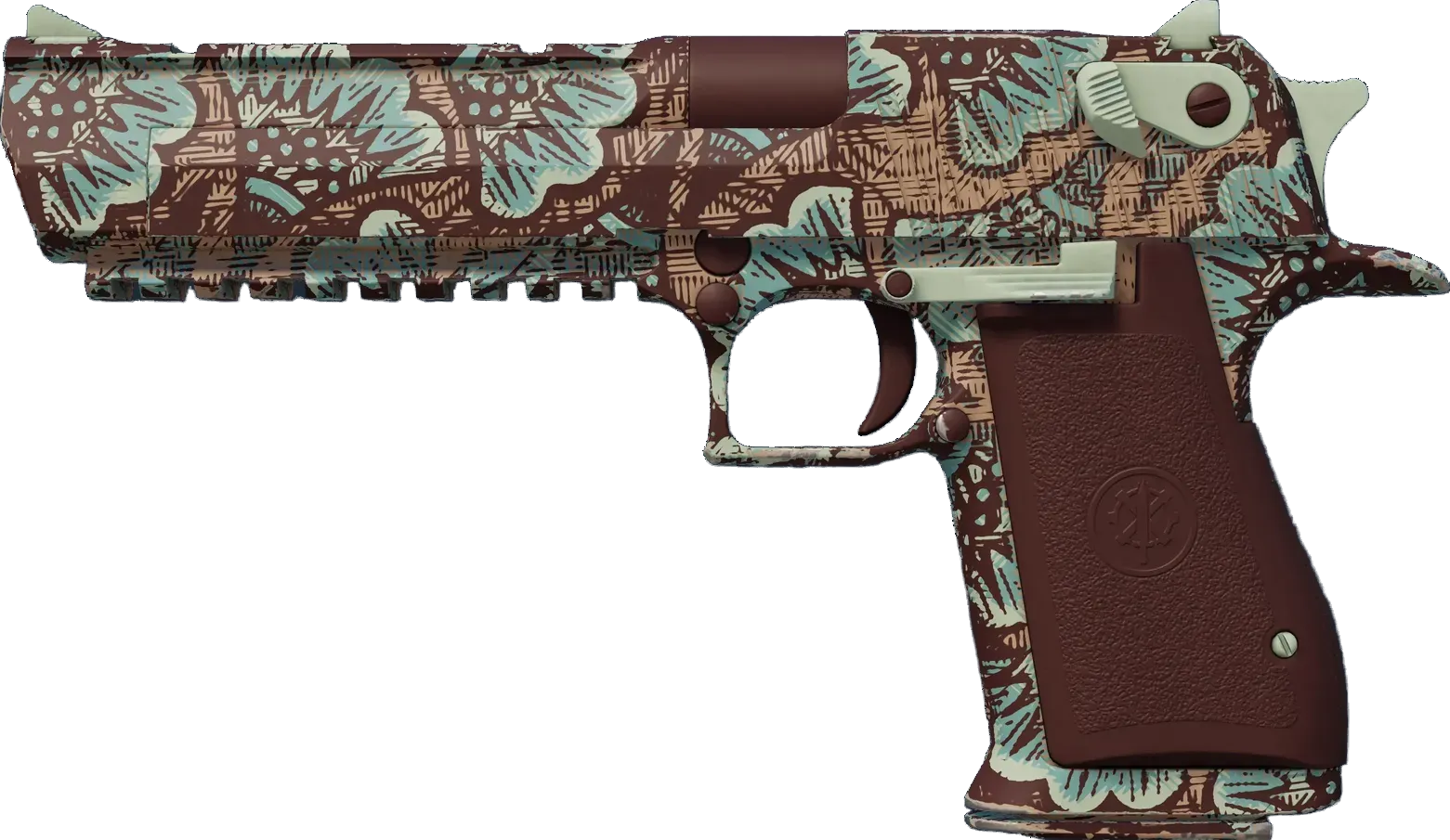 As expensive as it is powerful, the pistols/desert-eagle" class="text-orange-500 hover:underline underline-offset-4 decoration-orange-500/30">Desert Eagle is an iconic pistol that is difficult to master but surprisingly accurate at long range. A teal and brown halftone fan pattern has been applied. _Let's clear the air_