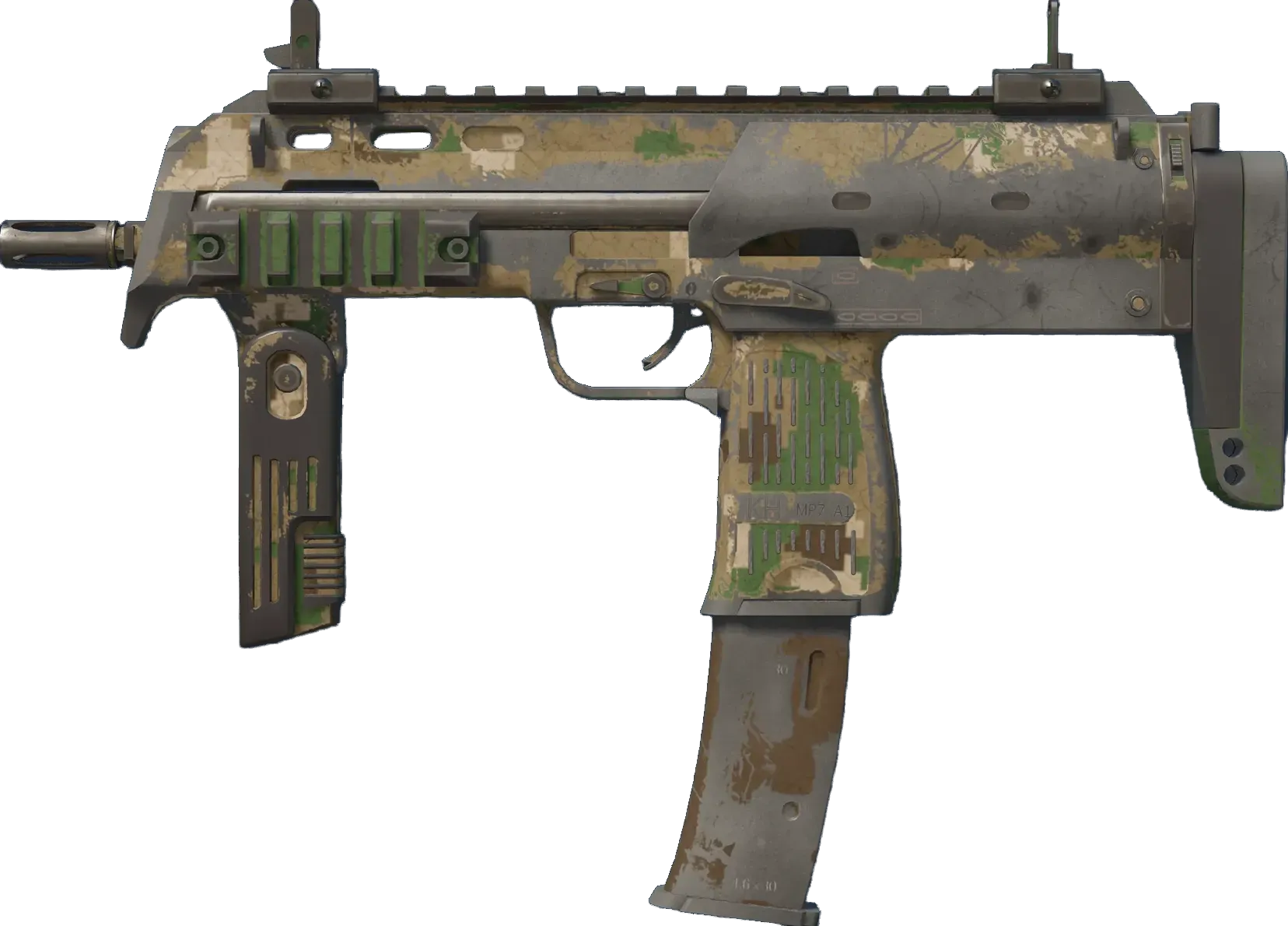 Versatile but expensive, the German-made MP7 SMG is the perfect choice for high-impact close-range combat. It has been painted using a Digital Disruptive Pattern (DDPAT) hydrographic. _By the time you're close enough to notice the pixels it's already too late_