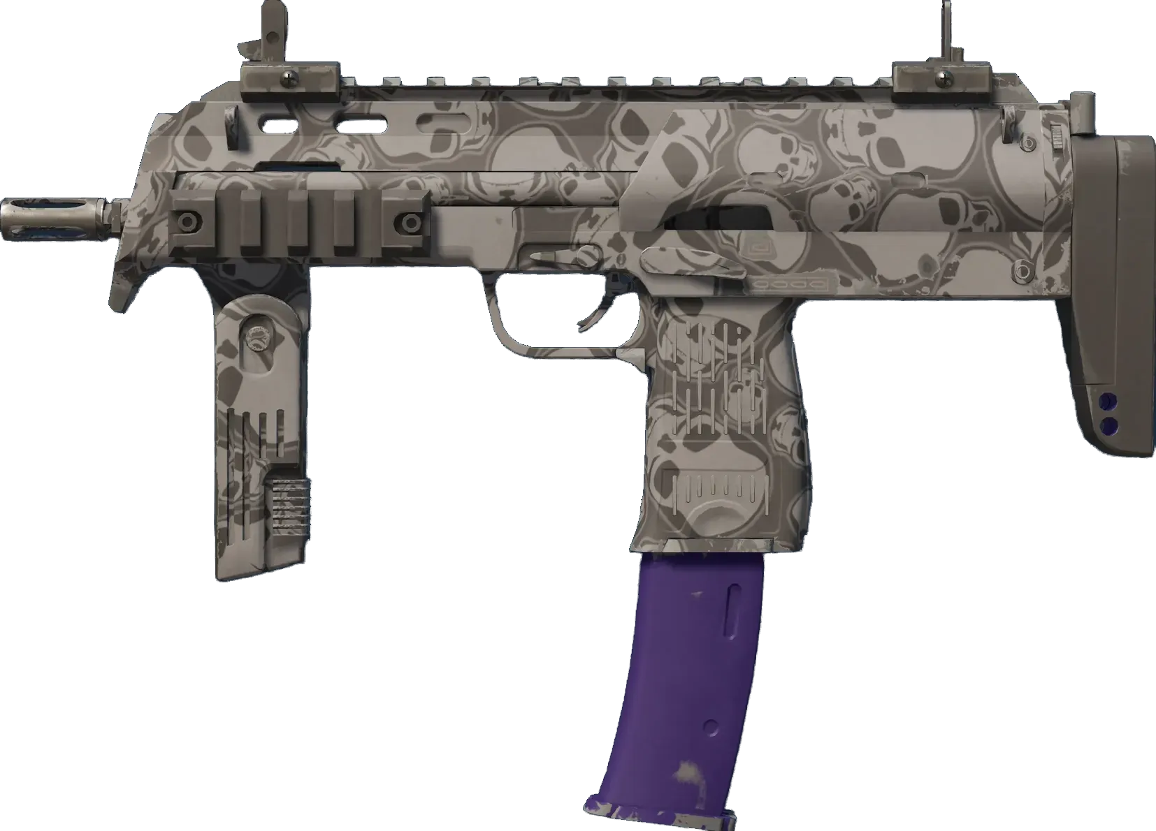 Значение float для MP7 | Skulls варьируется от 0.00 до 1.00, что делает скин доступным во всех экстерьерах. Для каждого экстерьера также существует версия StatTrak.