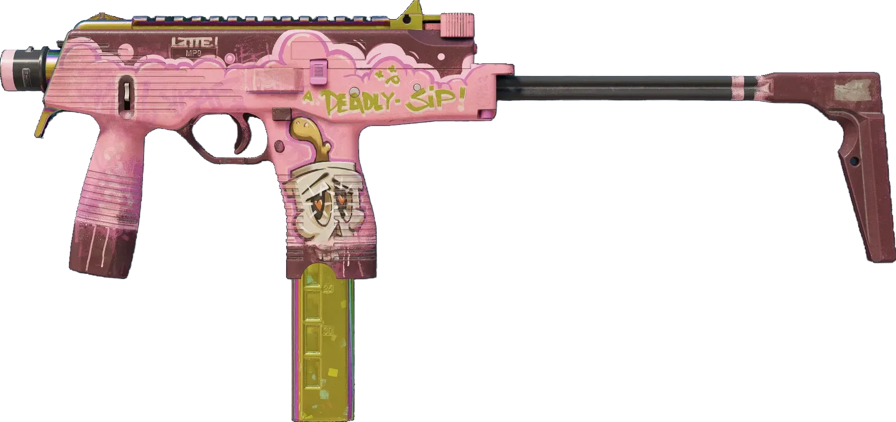 Manufactured in Switzerland, the cutting-edge MP9 SMG is an ergonomic polymer weapon favored by private security firms. It has been custom painted to resemble the "Latte" drum found on Train's B site. _Start your morning right_