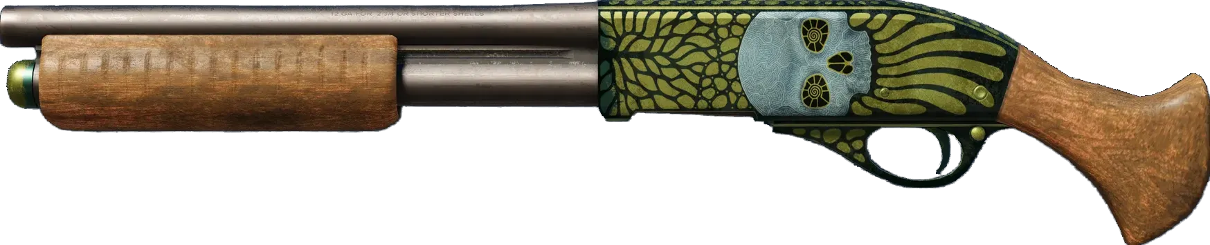 The classic Sawed-Off deals very heavy close-range damage, but with its low accuracy, high spread and slow rate of fire, you'd better kill what you hit. It has been given a skull hydrographic and hand painted gold accents. _Rosencrantz and Guildenstern never had a chance..._