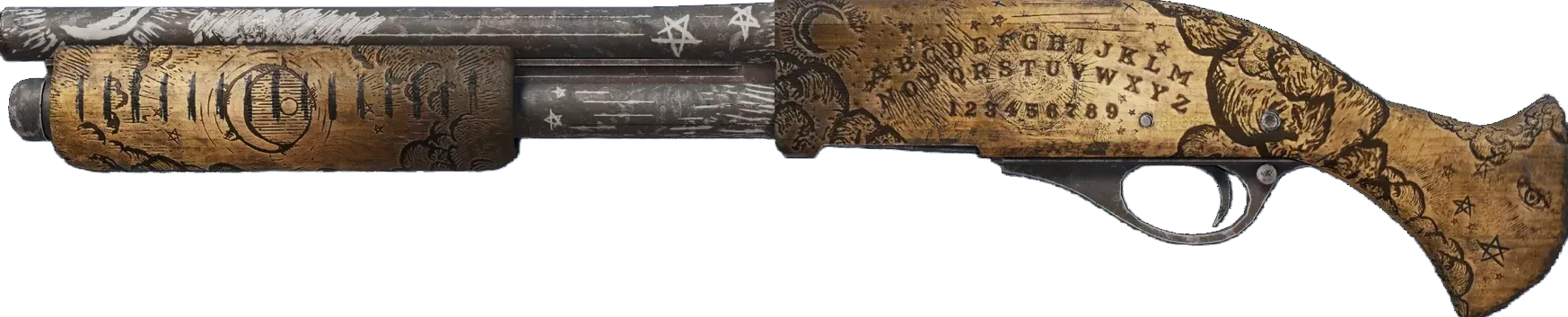 The classic Sawed-Off deals very heavy close-range damage, but with its low accuracy, high spread and slow rate of fire, you'd better kill what you hit. It has been custom painted to resemble a heavily played spirit board. _"Come on, I know you're moving it..."_