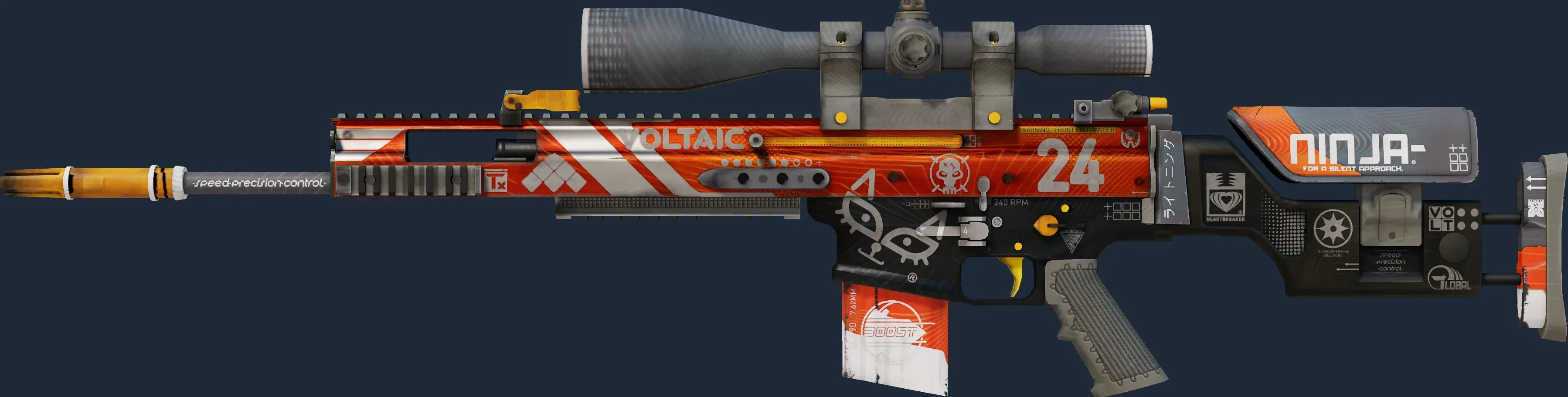 The SCAR-20 | Bloodsport is a Covert grade skin for the SCAR-20 in Counter-Strike 2. It features a Custom Paint Job finish and was designed by SLIMEface.
