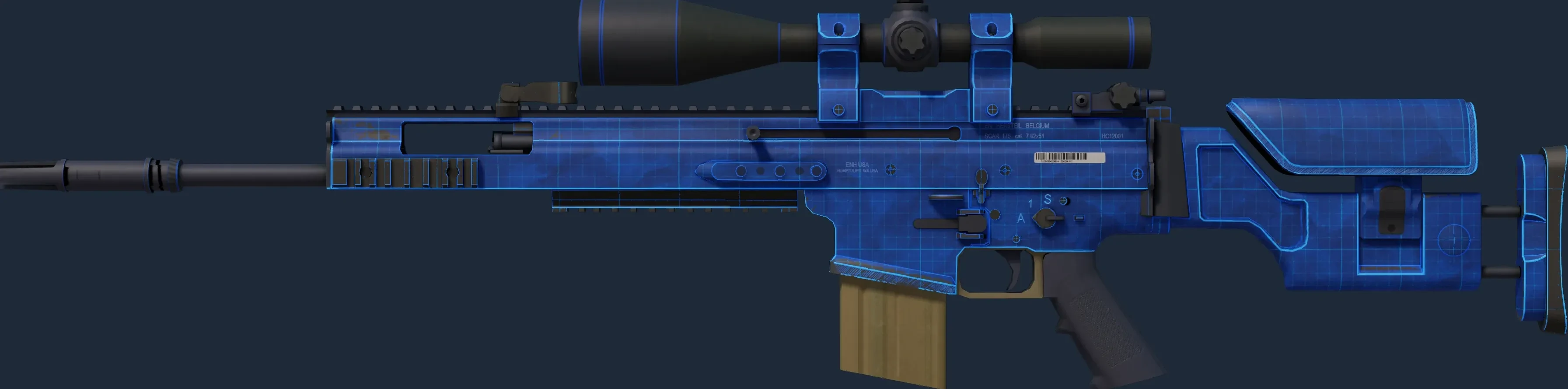 The SCAR-20 | Blueprint is a Covert grade skin for the SCAR-20 in Counter-Strike 2. It features a Custom Paint Job finish and was designed by Graff.