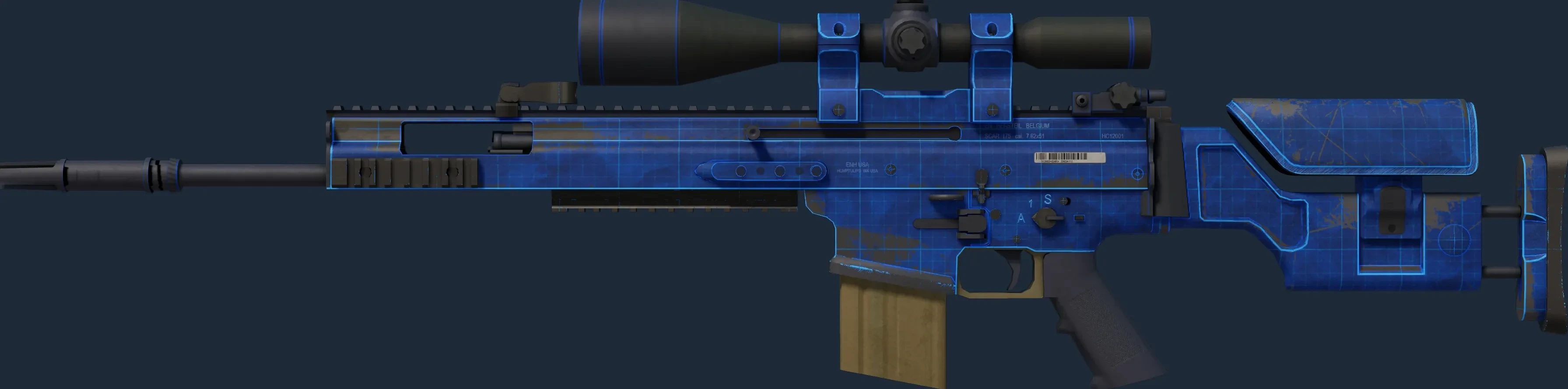 The SCAR-20 | Blueprint is a Covert grade skin for the SCAR-20 in Counter-Strike 2. It features a Custom Paint Job finish and was designed by Graff.