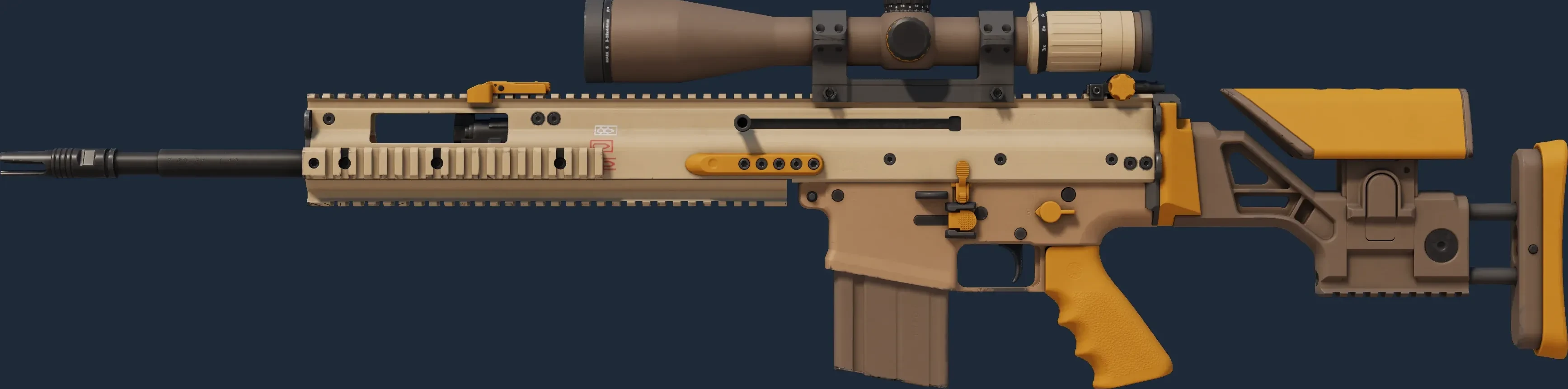 The SCAR-20 | Short Ochre is a Covert grade skin for the SCAR-20 in Counter-Strike 2. It features a Custom Paint Job finish and was designed by Valve.
