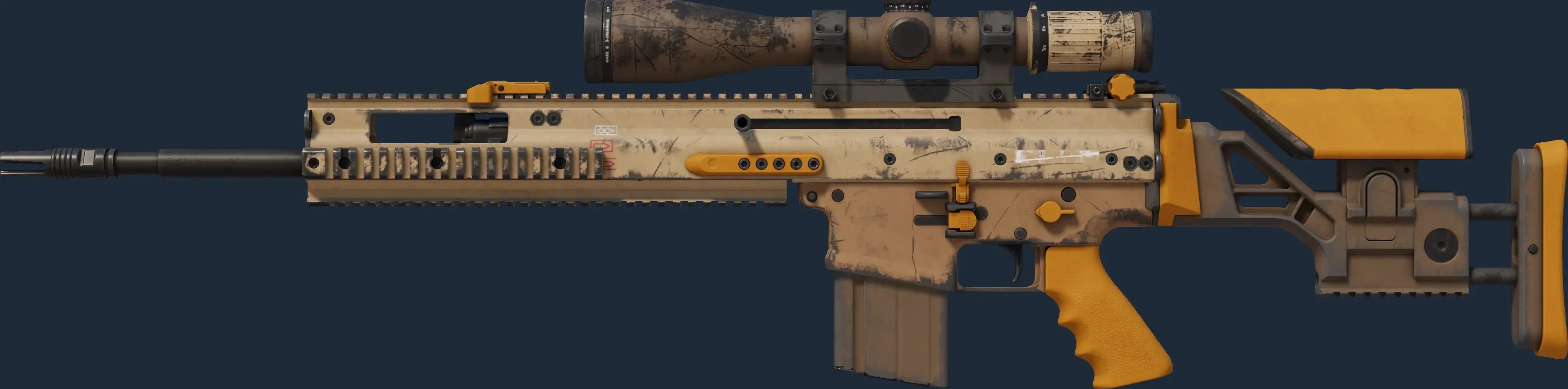 The SCAR-20 | Short Ochre is a Covert grade skin for the SCAR-20 in Counter-Strike 2. It features a Custom Paint Job finish and was designed by Valve.