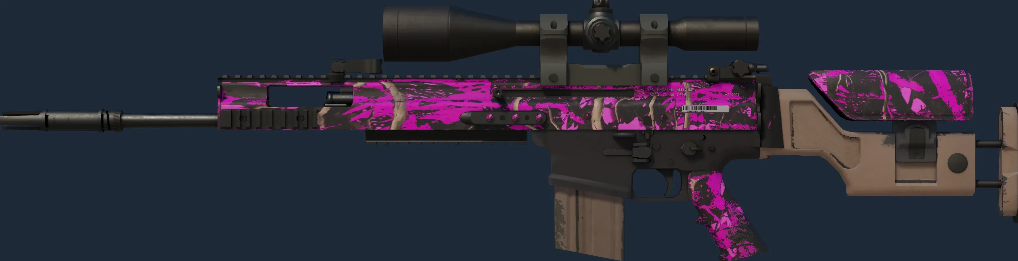 The SCAR-20 | Splash Jam is a Covert grade skin for the SCAR-20 in Counter-Strike 2. It features a Custom Paint Job finish and was designed by Valve.