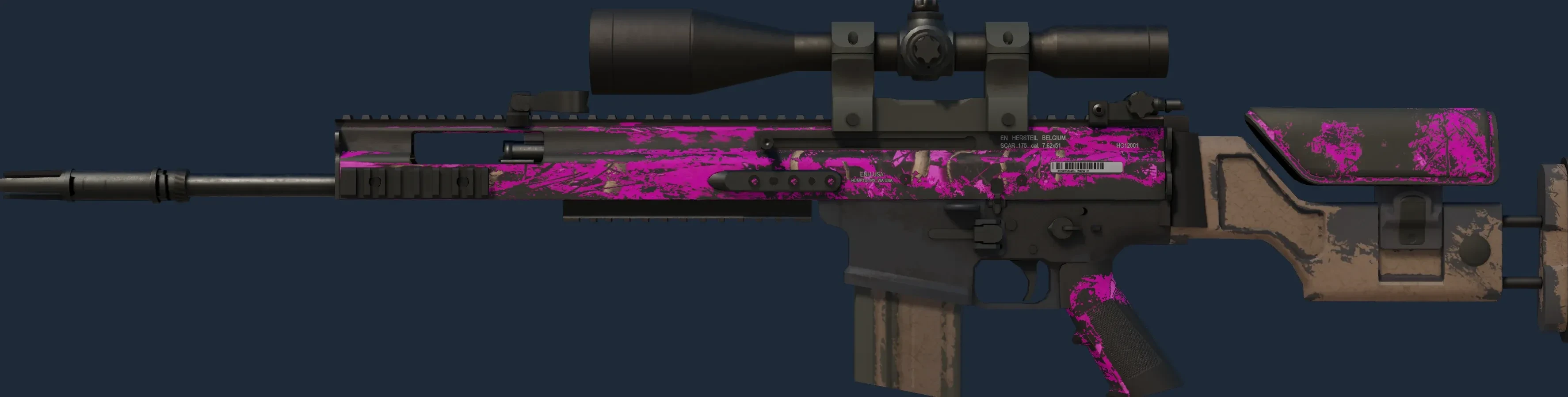 The SCAR-20 | Splash Jam is a Covert grade skin for the SCAR-20 in Counter-Strike 2. It features a Custom Paint Job finish and was designed by Valve.