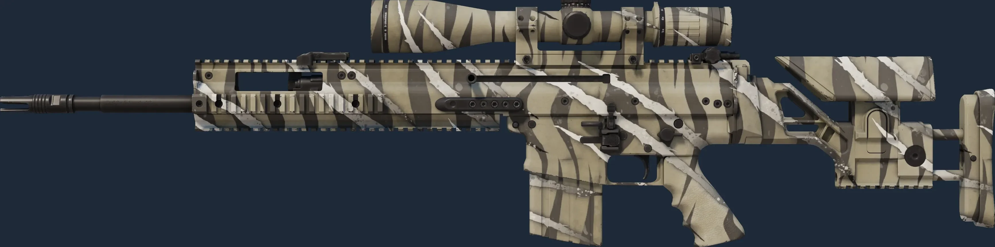 The SCAR-20 | Torn is a Covert grade skin for the SCAR-20 in Counter-Strike 2. It features a Custom Paint Job finish and was designed by dabes.