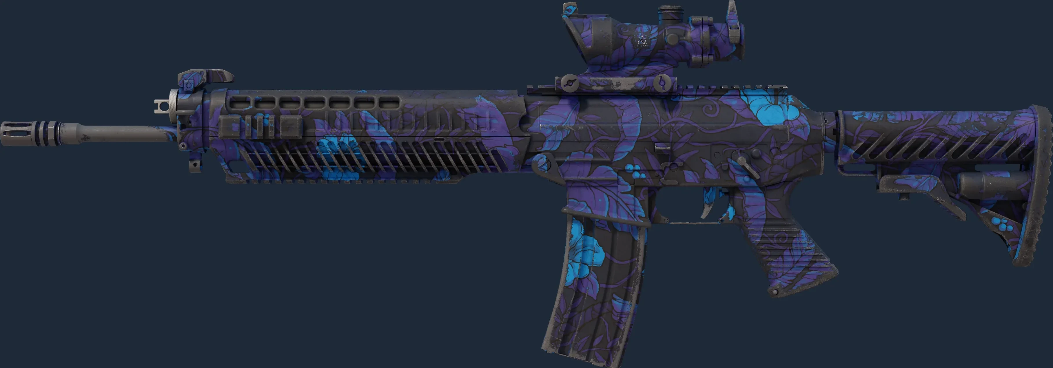 The SG 553 | Aloha is a Covert grade skin for the SG 553 in Counter-Strike 2. It features a Custom Paint Job finish and was designed by Chemical Alia.