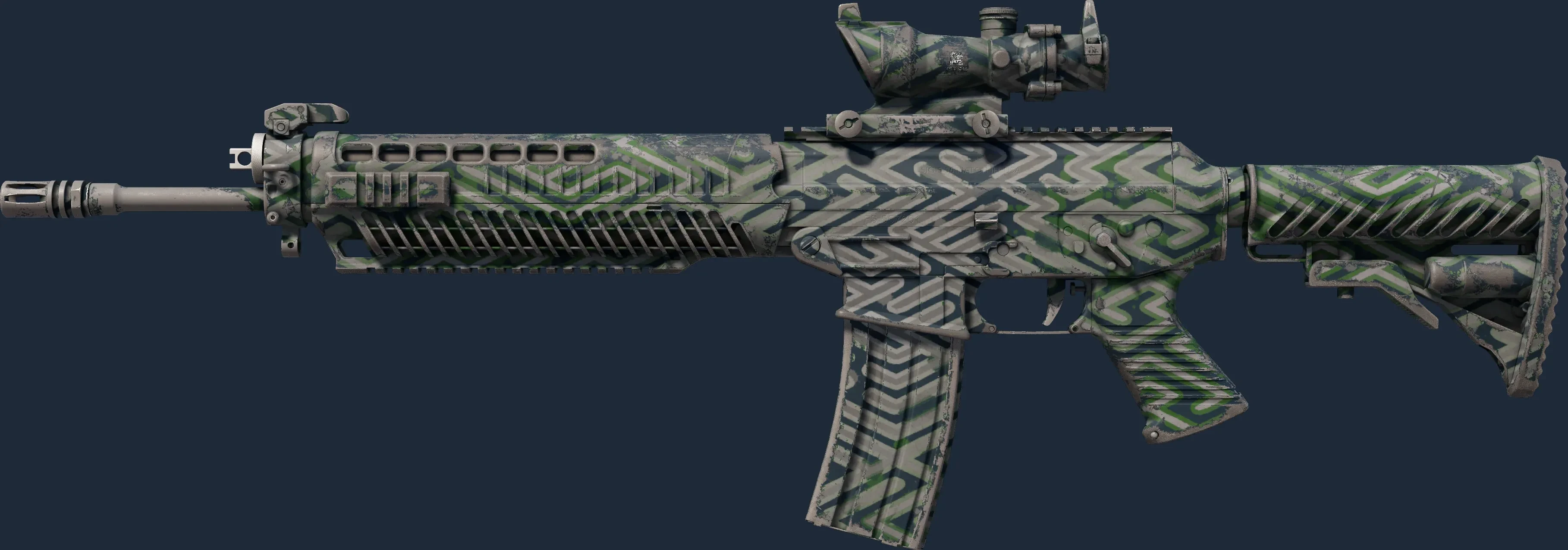 The SG 553 | Barricade is a Covert grade skin for the SG 553 in Counter-Strike 2. It features a Custom Paint Job finish and was designed by Valve.