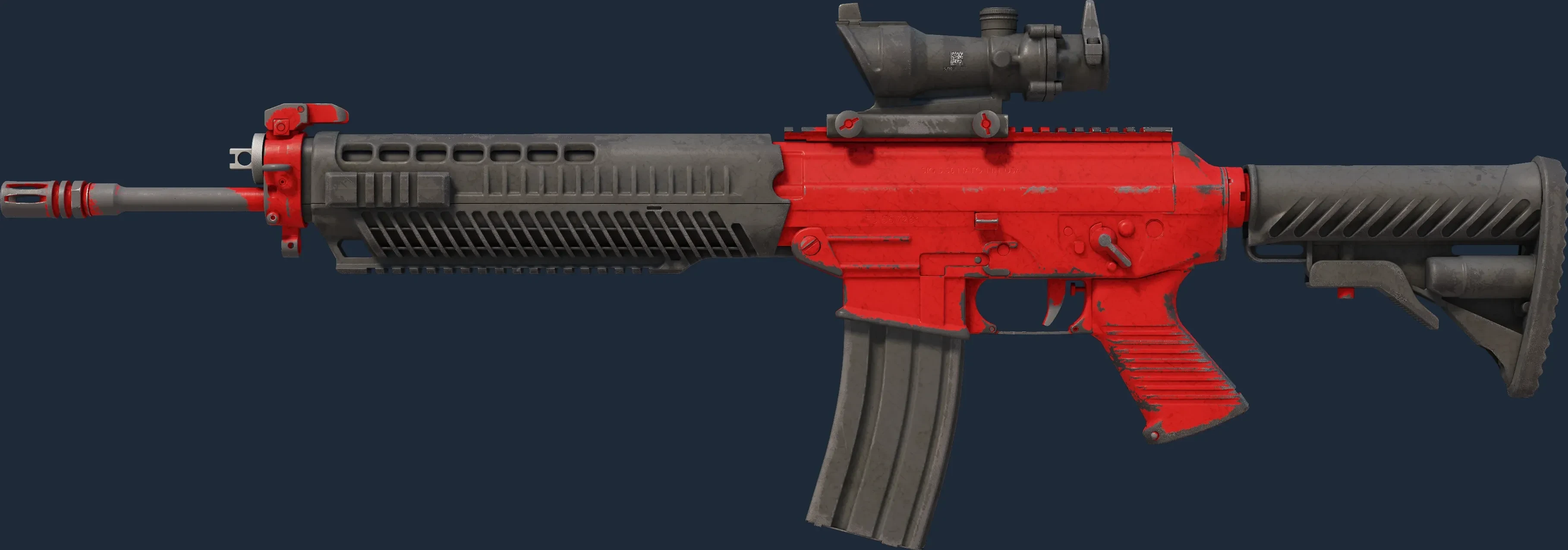 The SG 553 | Candy Apple is a Covert grade skin for the SG 553 in Counter-Strike 2. It features a Custom Paint Job finish and was designed by Valve.